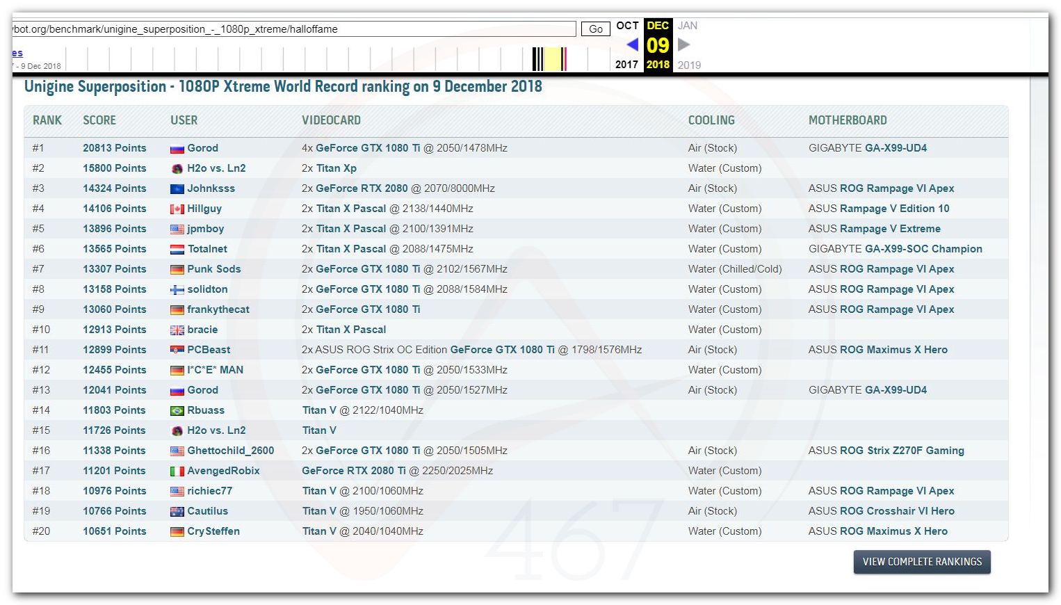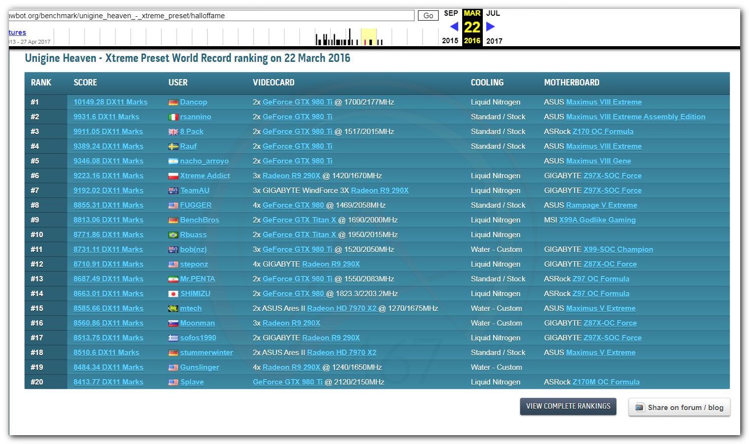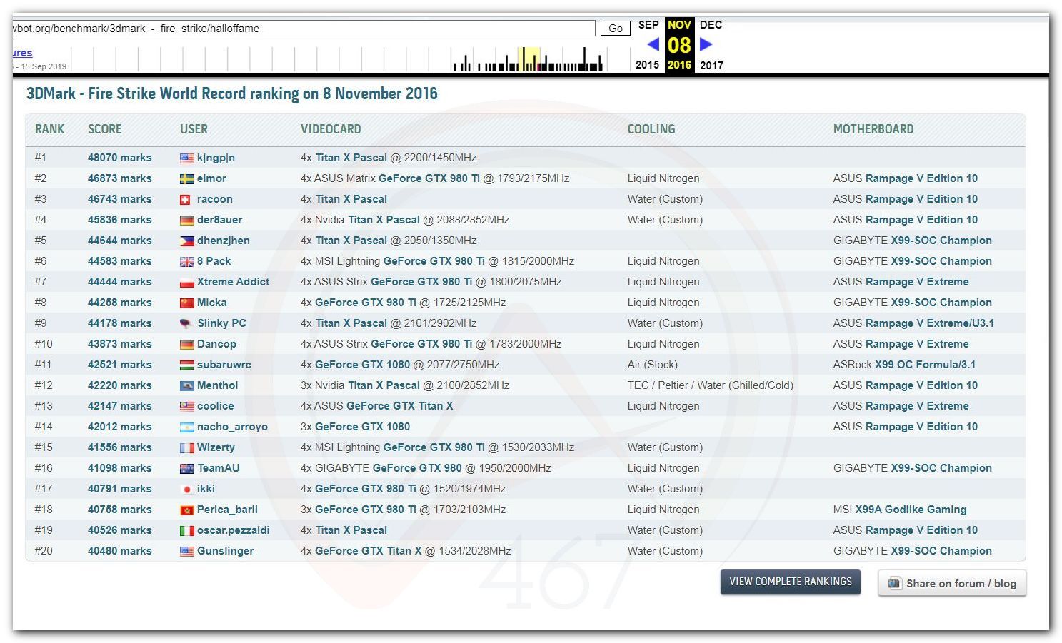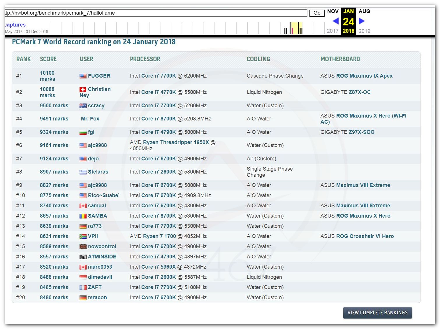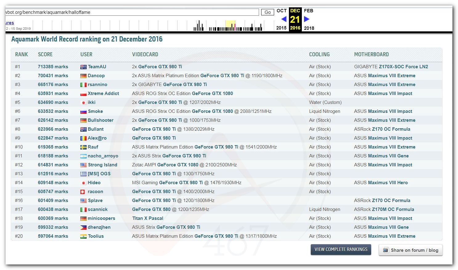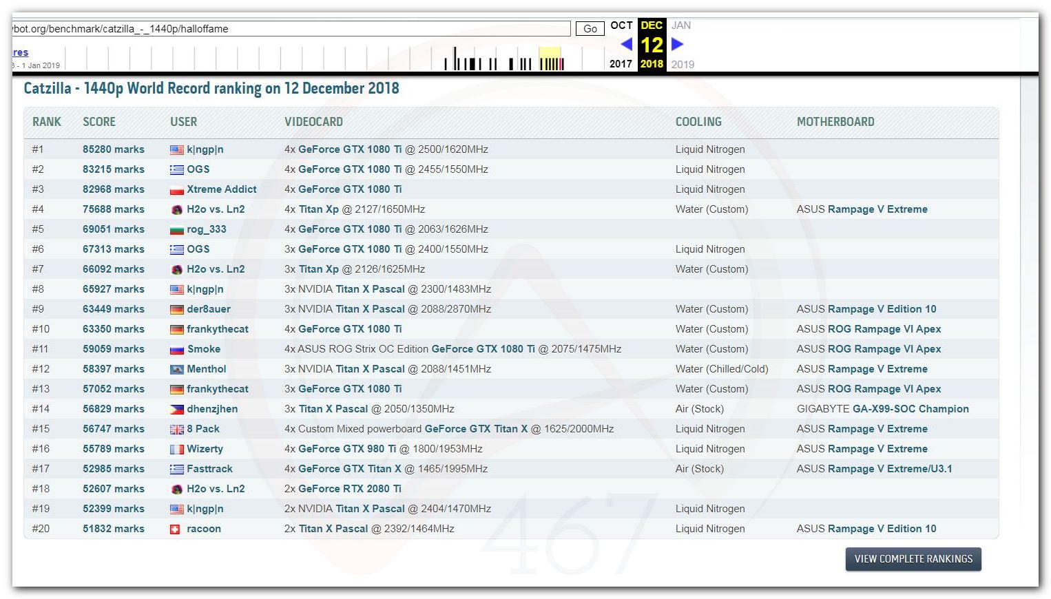 В 2000г. наверное самый бум наступил в момент появления 3DMark2000 и далее 2001, и создания базы этих результатов ORB на сайте MadOnion. В последствии перекочевала на Futuremark.