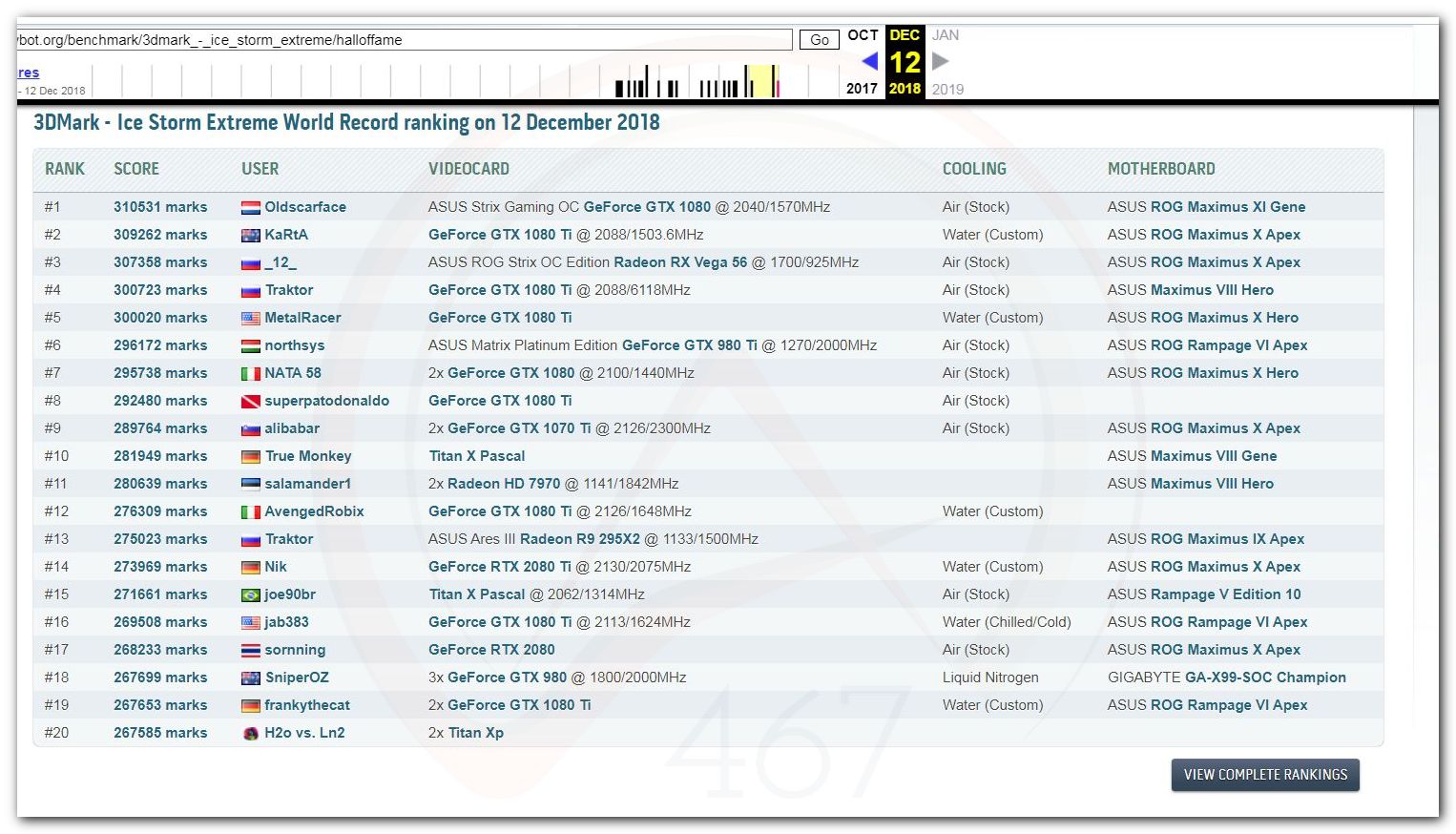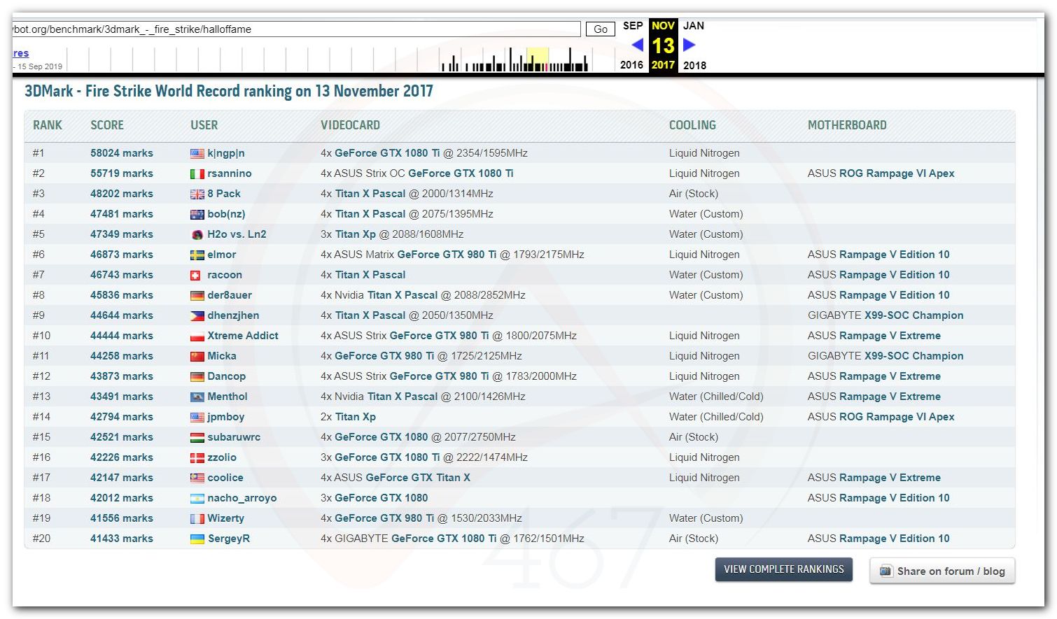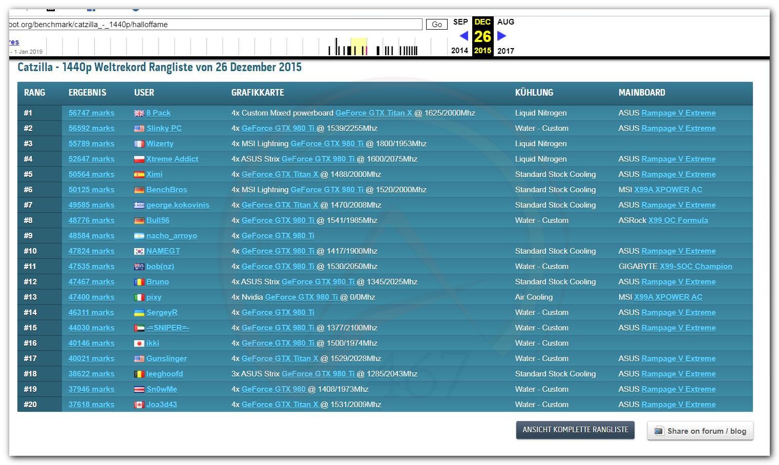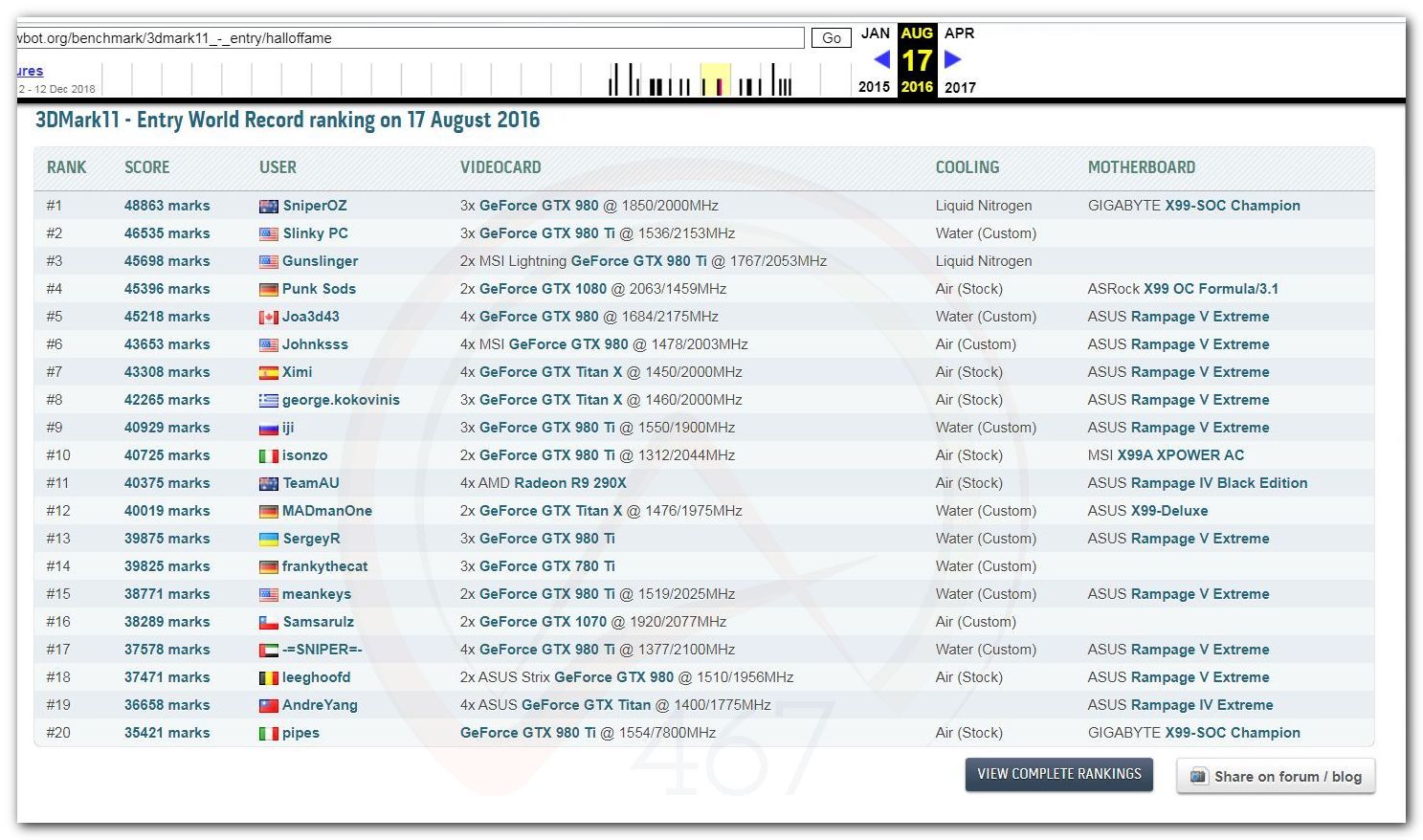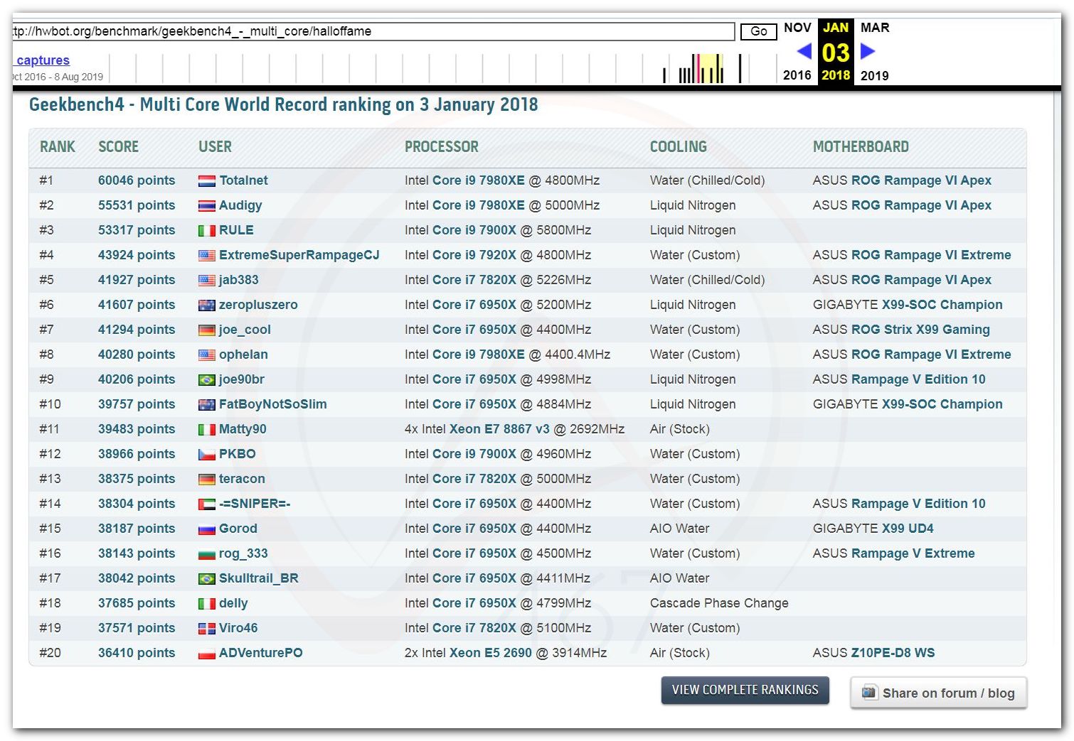 В 2000г. наверное самый бум наступил в момент появления 3DMark2000 и далее 2001, и создания базы этих результатов ORB на сайте MadOnion. В последствии перекочевала на Futuremark.