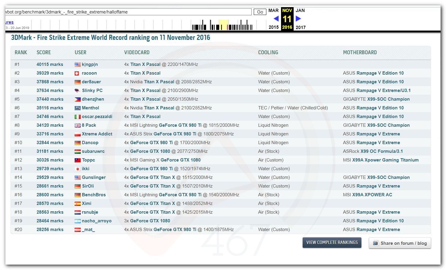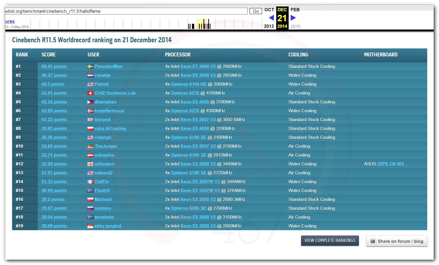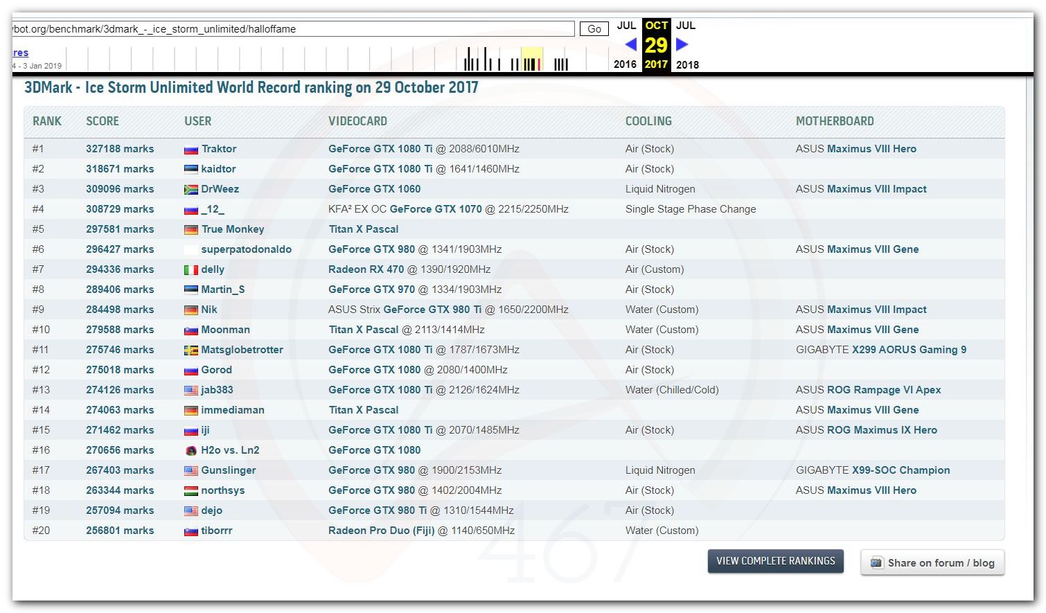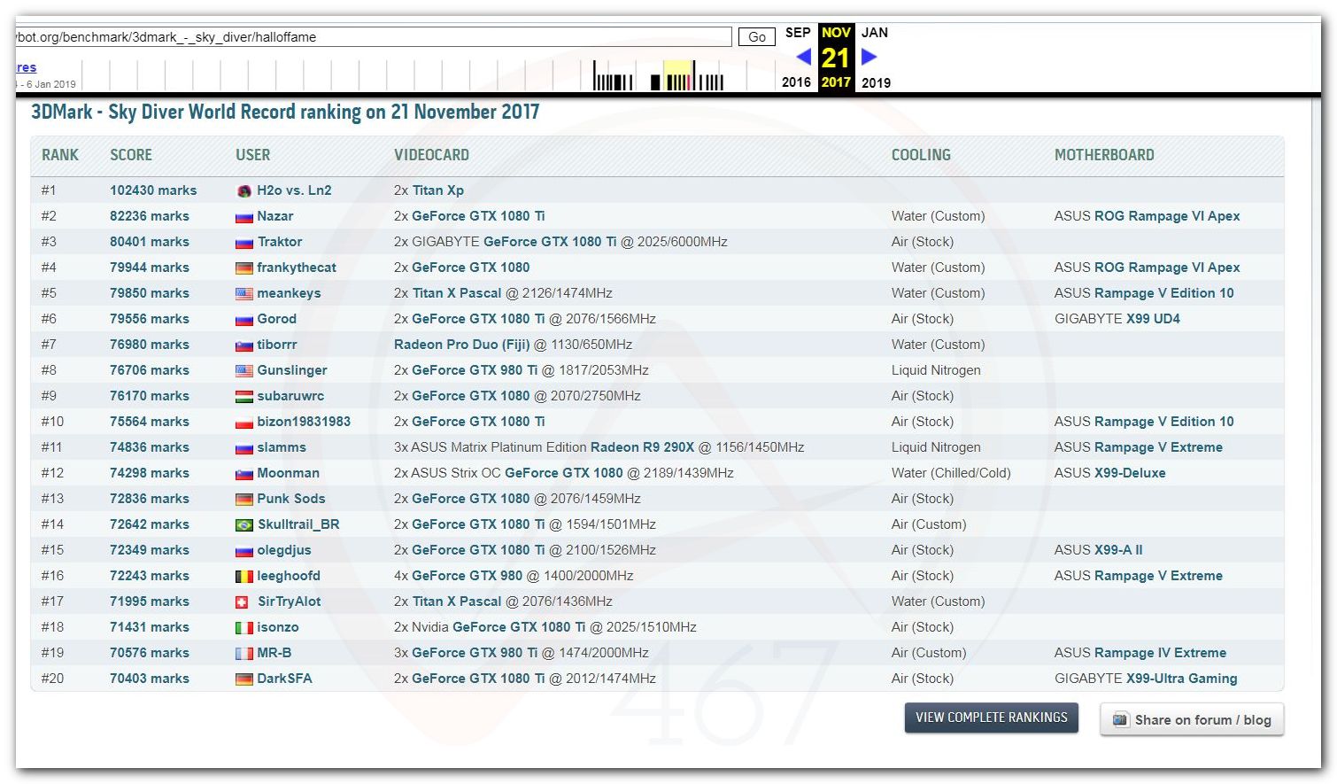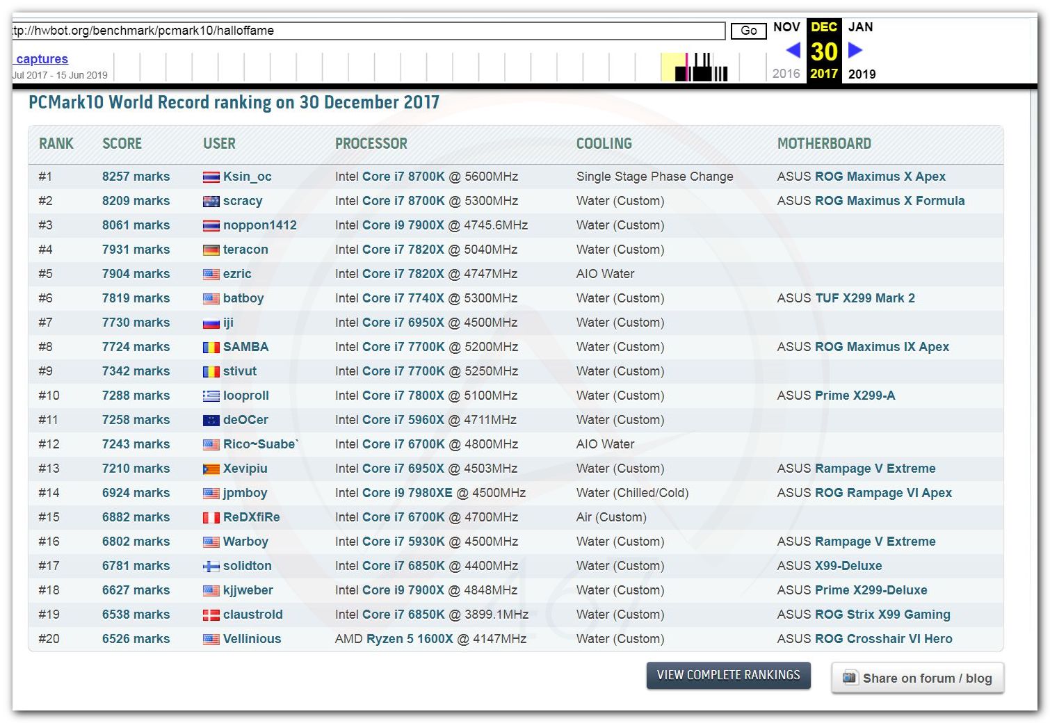 В 2000г. наверное самый бум наступил в момент появления 3DMark2000 и далее 2001, и создания базы этих результатов ORB на сайте MadOnion. В последствии перекочевала на Futuremark.