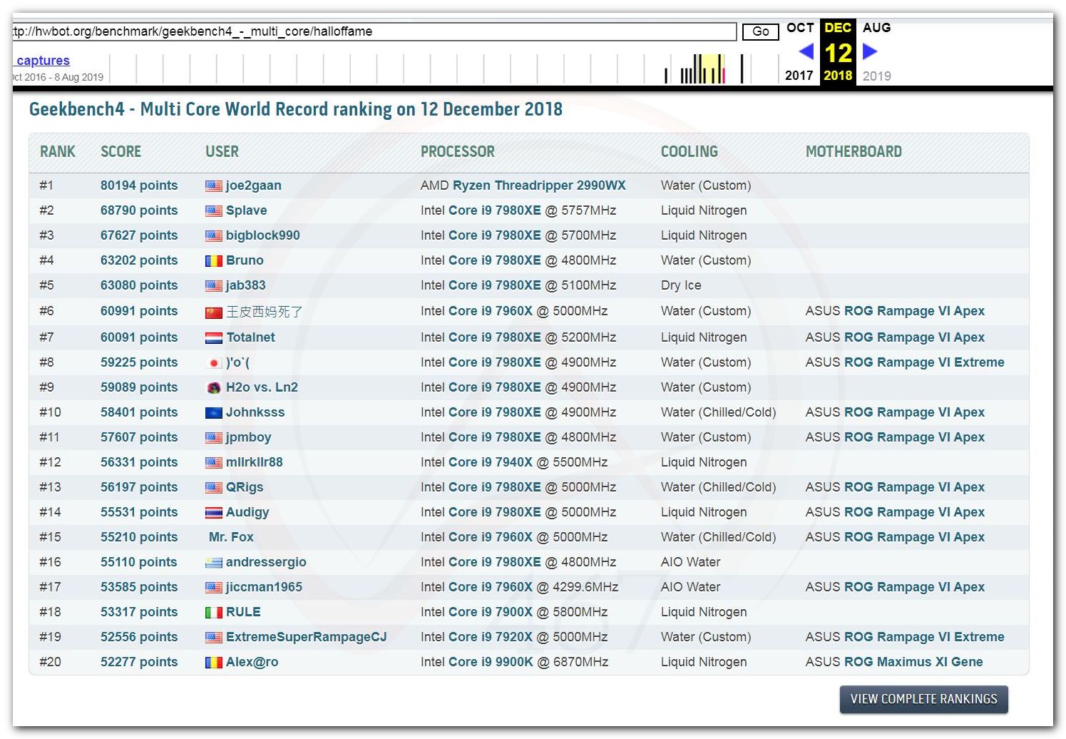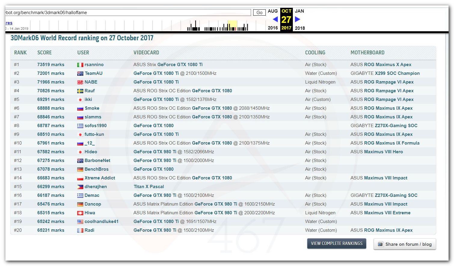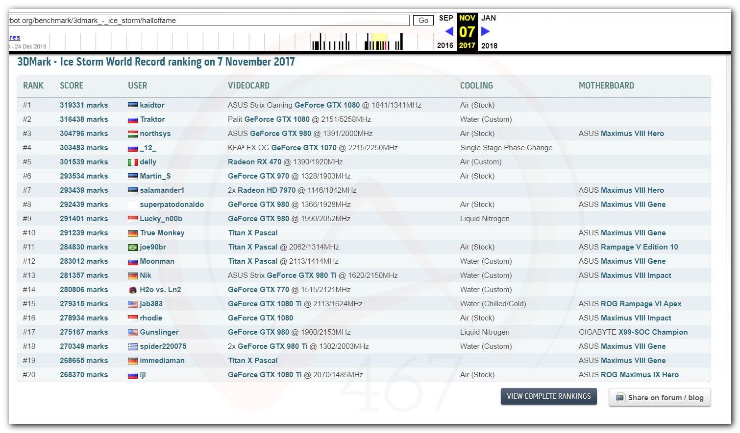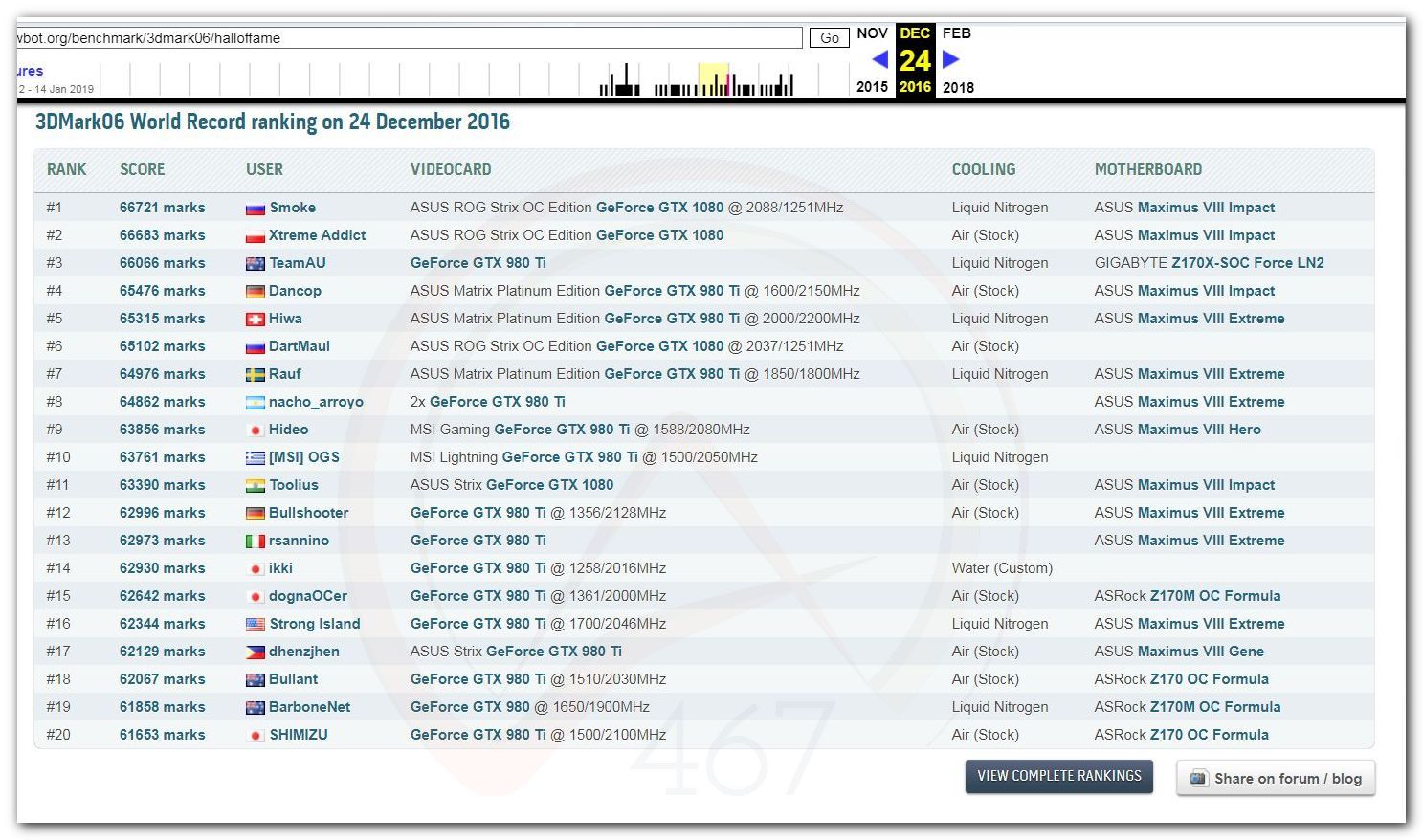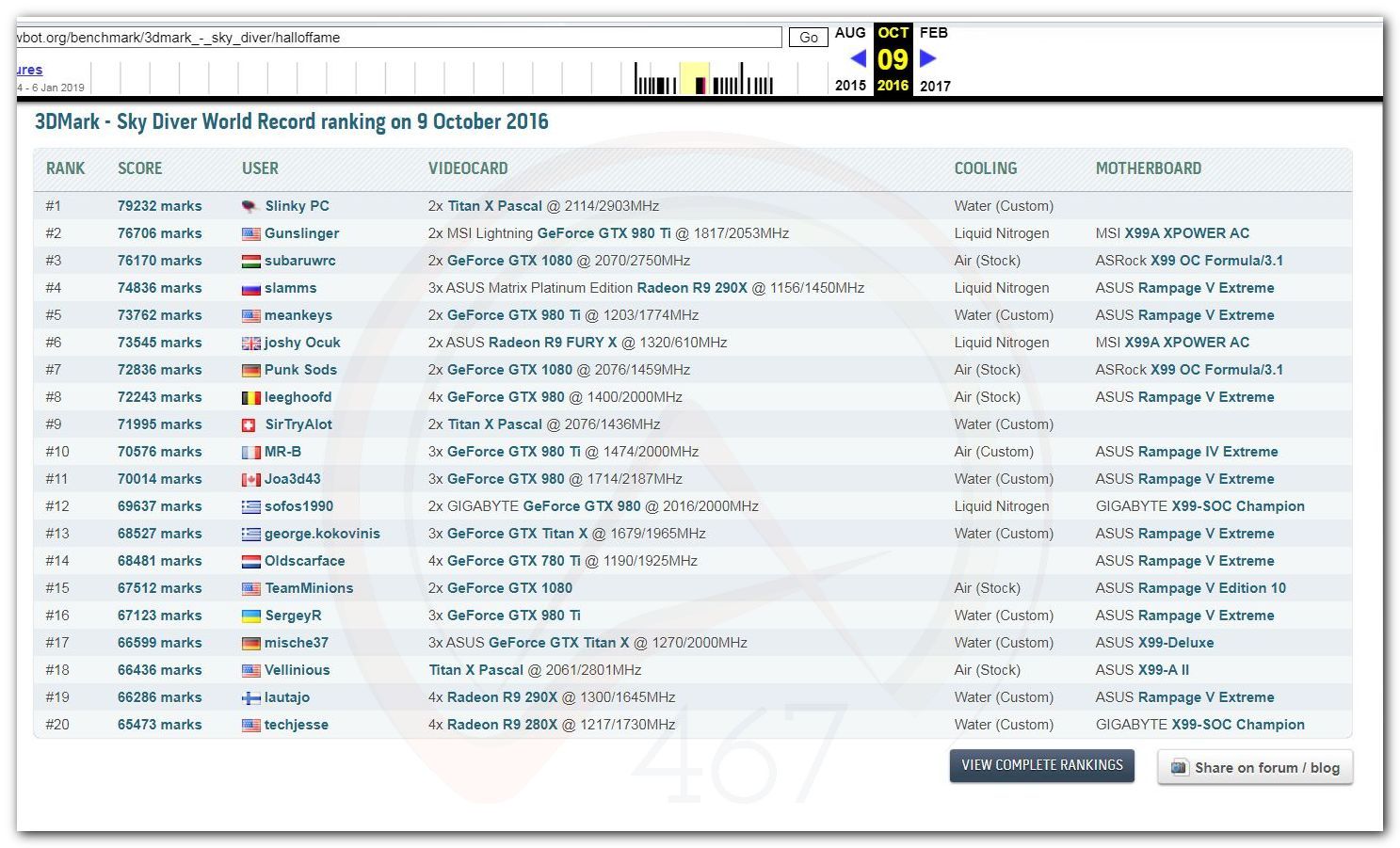 В 2000г. наверное самый бум наступил в момент появления 3DMark2000 и далее 2001, и создания базы этих результатов ORB на сайте MadOnion. В последствии перекочевала на Futuremark.