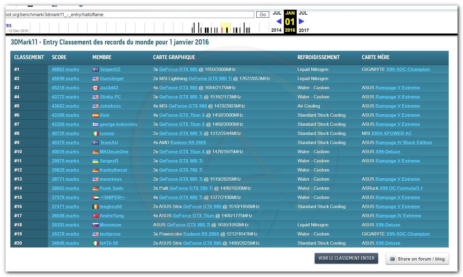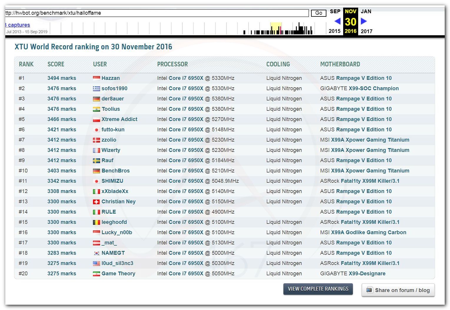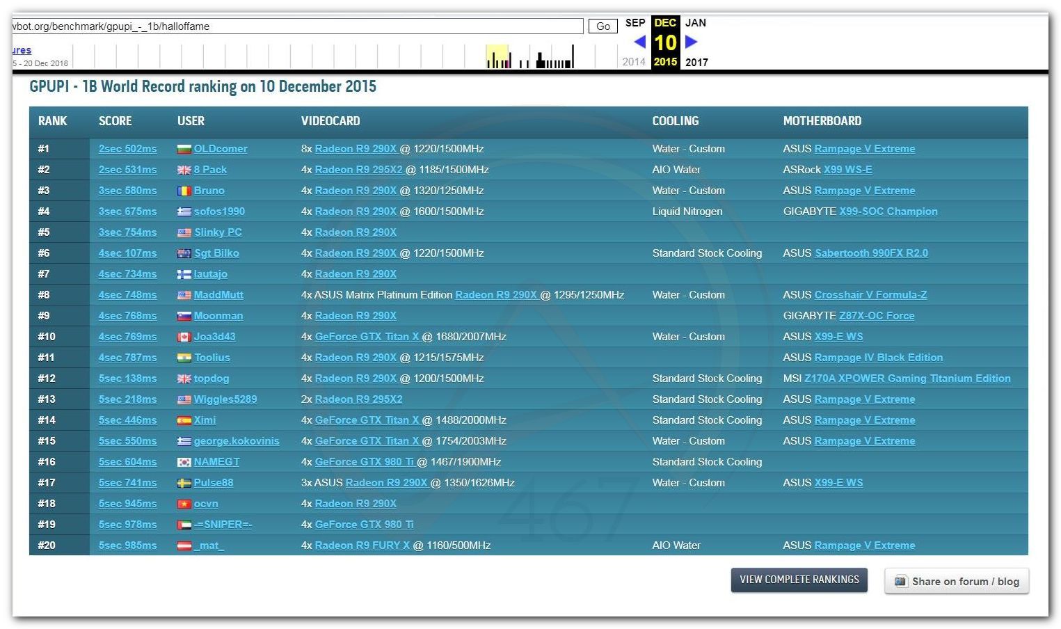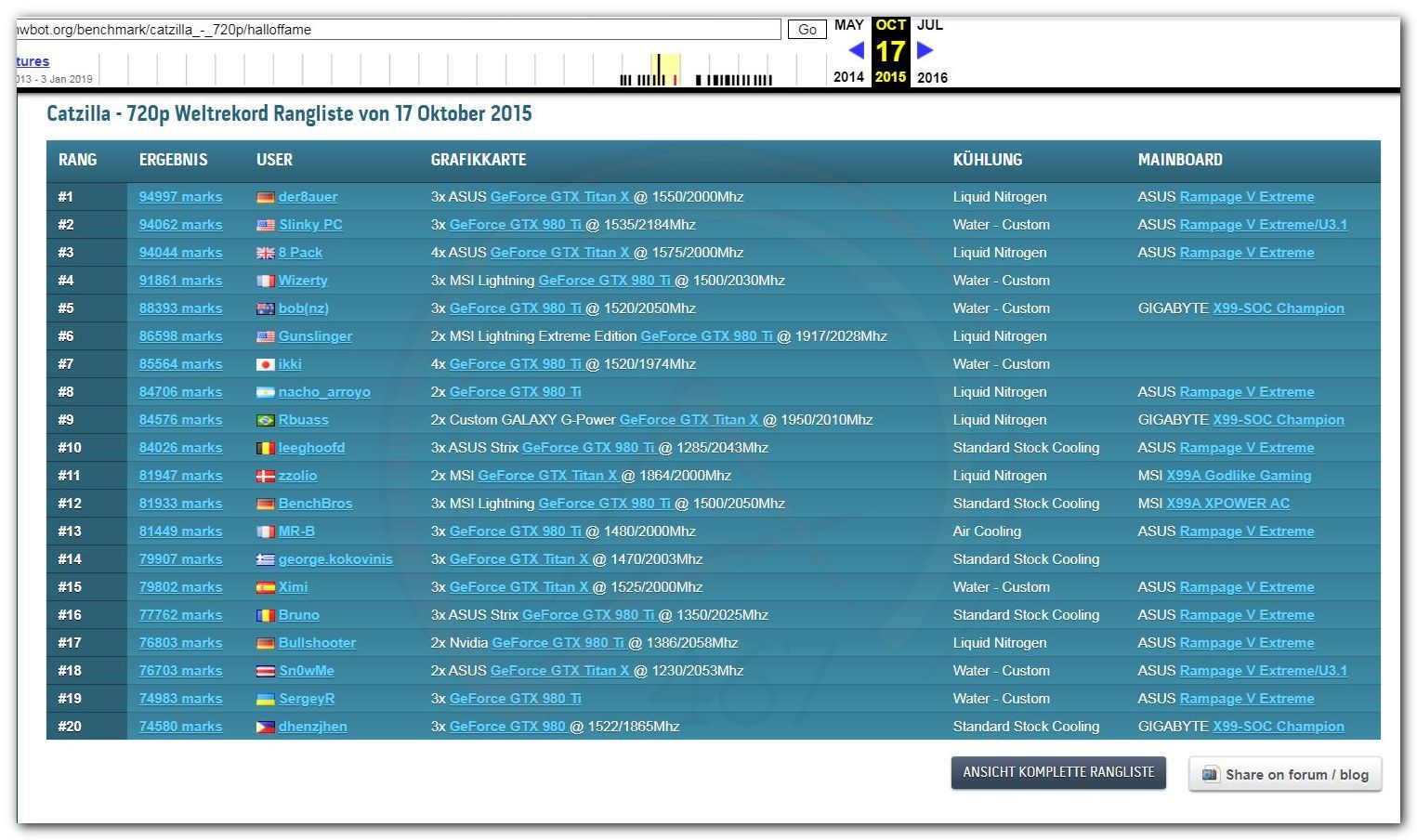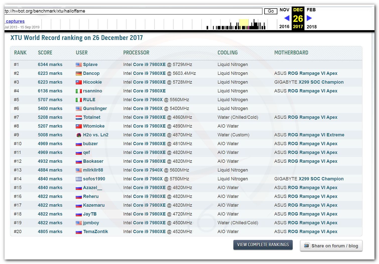 В 2000г. наверное самый бум наступил в момент появления 3DMark2000 и далее 2001, и создания базы этих результатов ORB на сайте MadOnion. В последствии перекочевала на Futuremark.