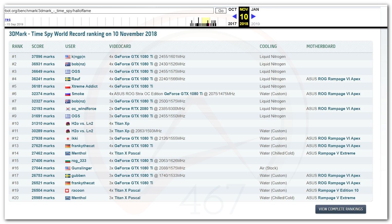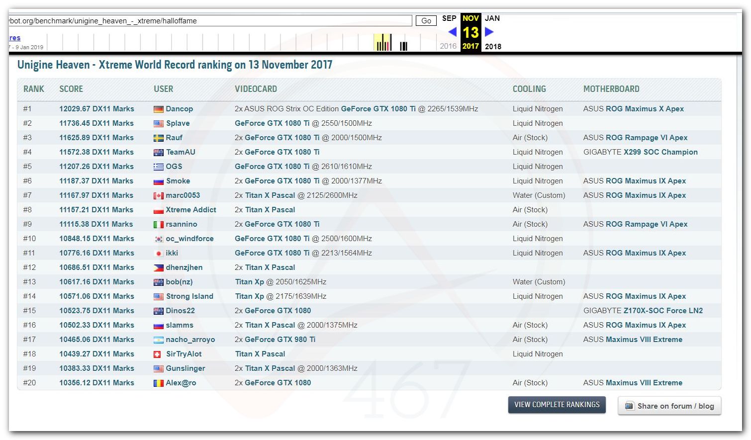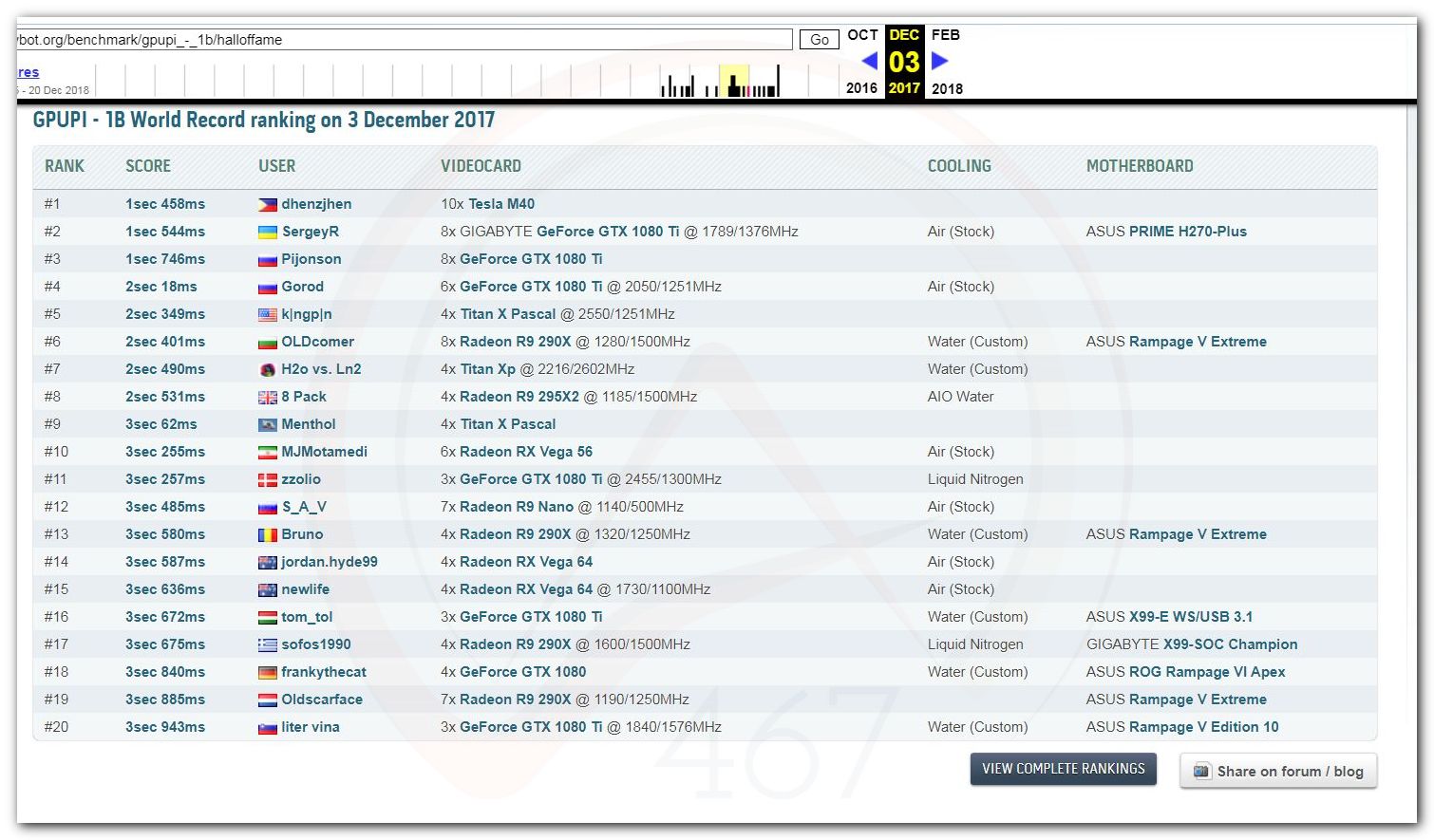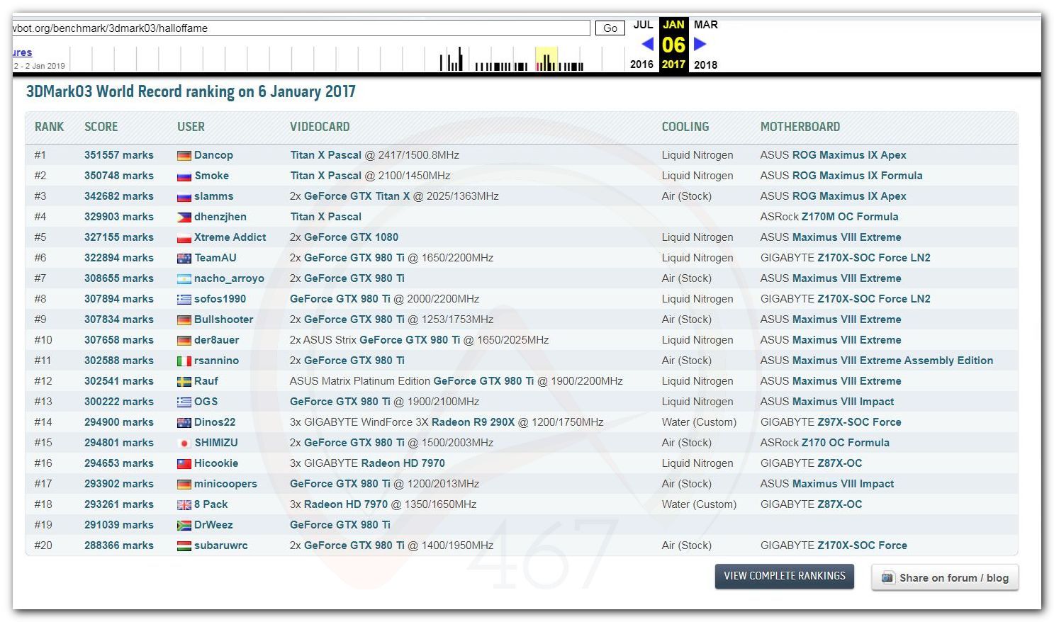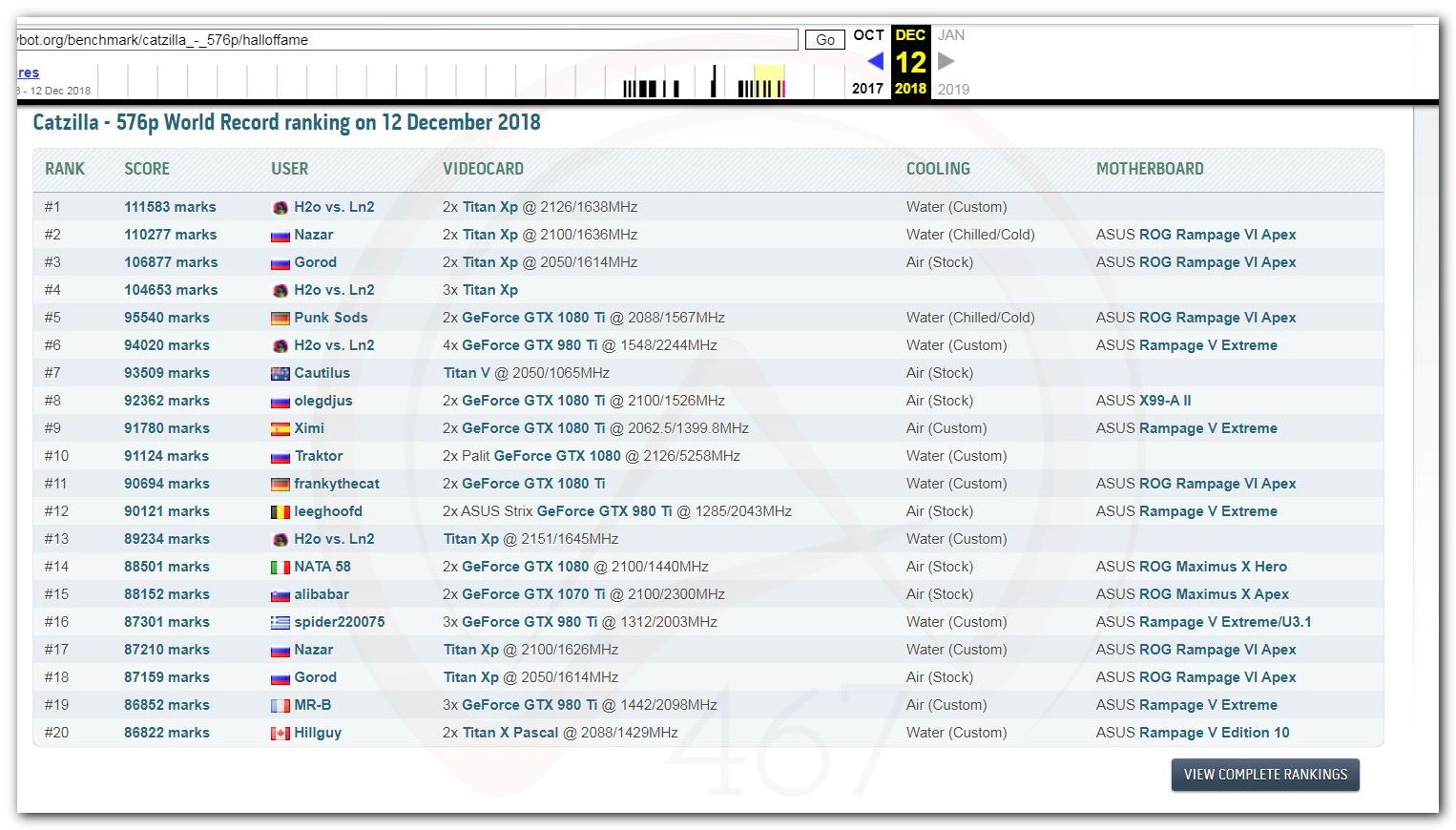 В 2000г. наверное самый бум наступил в момент появления 3DMark2000 и далее 2001, и создания базы этих результатов ORB на сайте MadOnion. В последствии перекочевала на Futuremark.