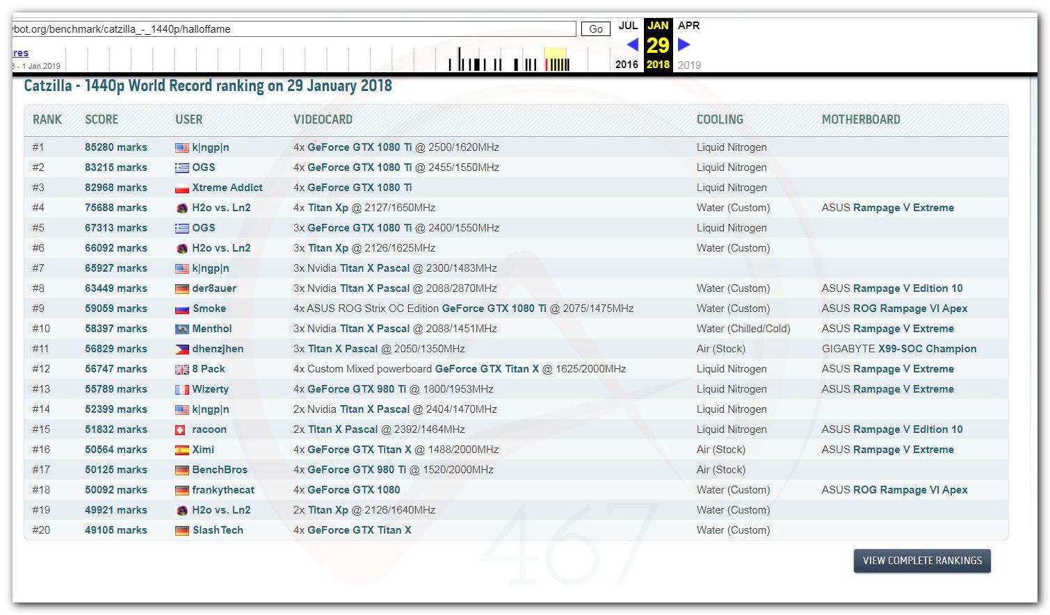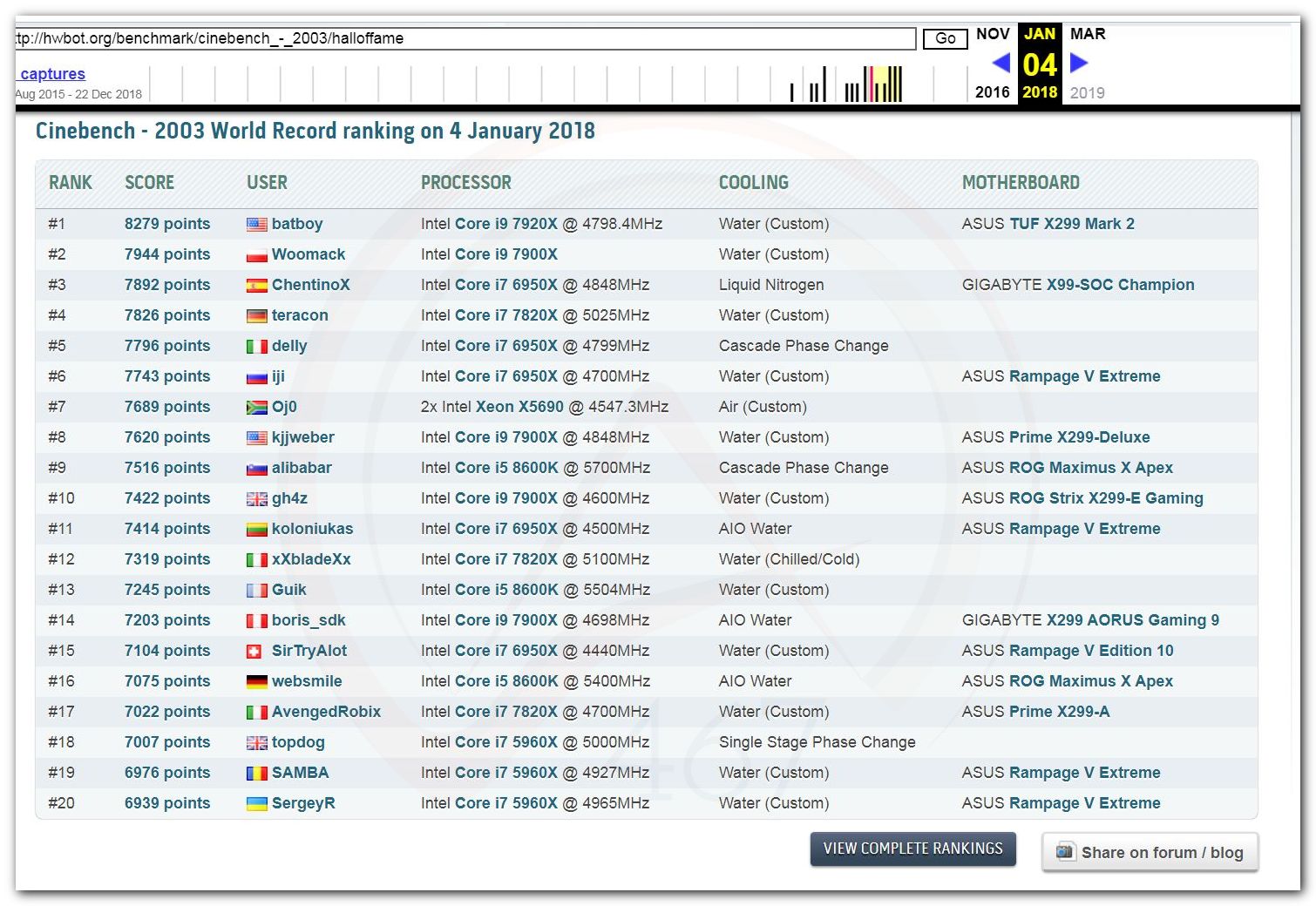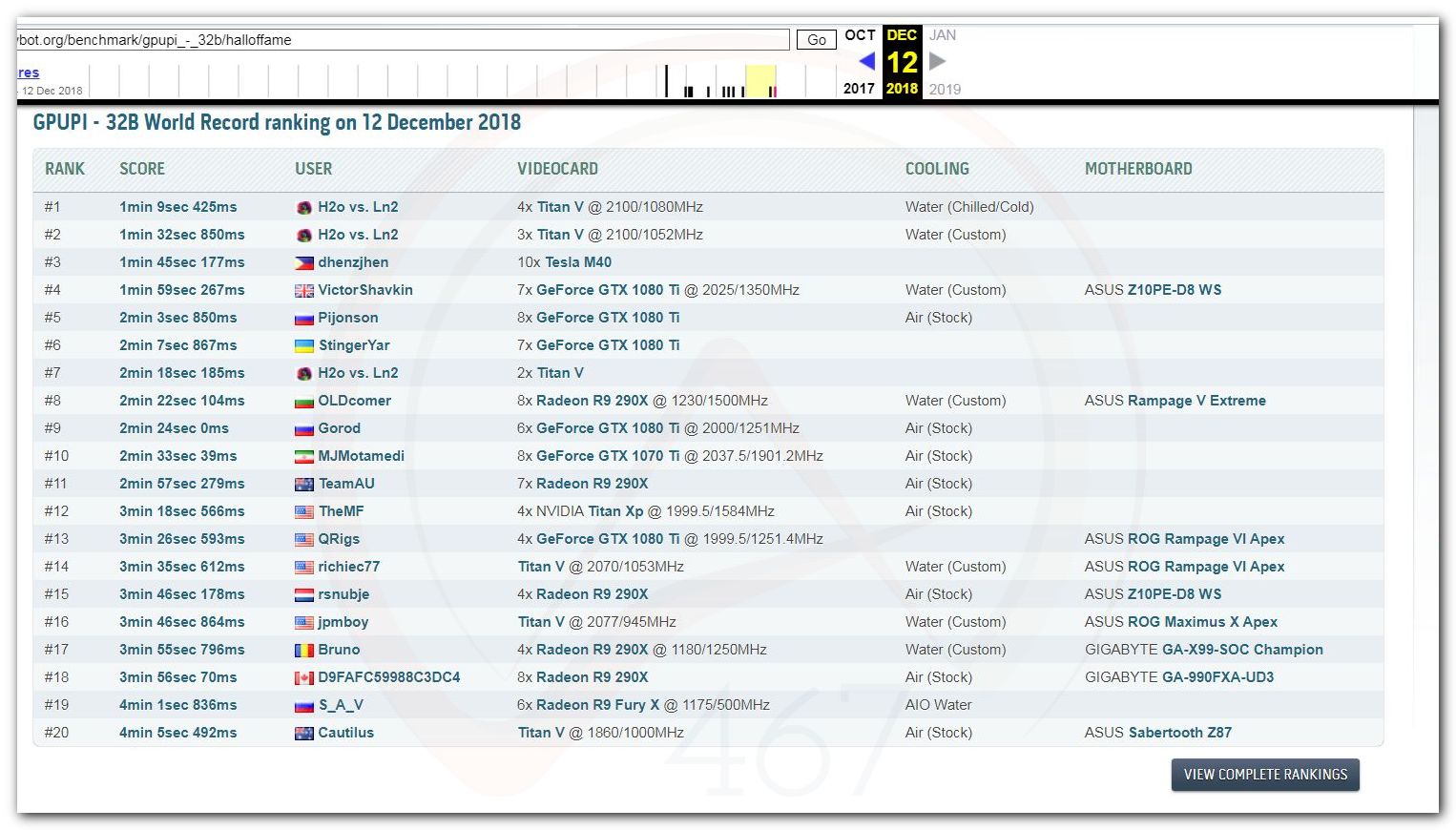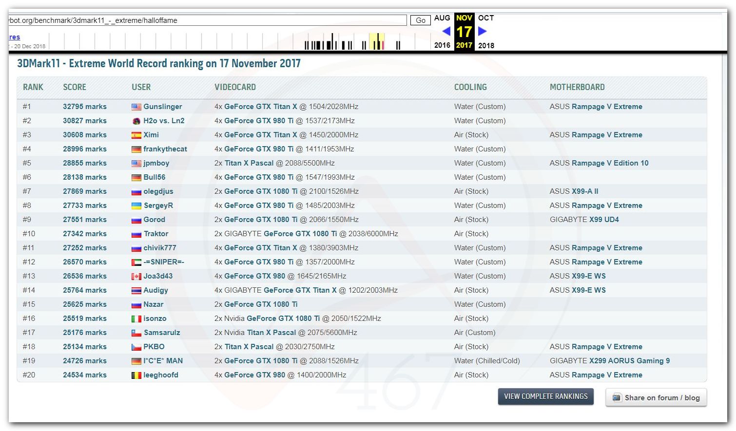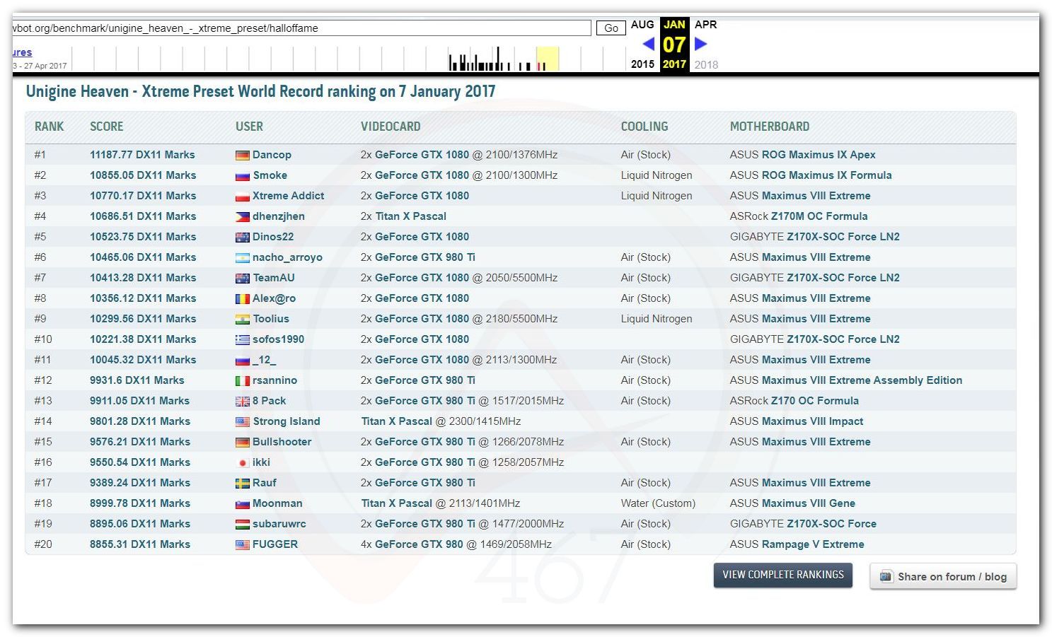 В 2000г. наверное самый бум наступил в момент появления 3DMark2000 и далее 2001, и создания базы этих результатов ORB на сайте MadOnion. В последствии перекочевала на Futuremark.