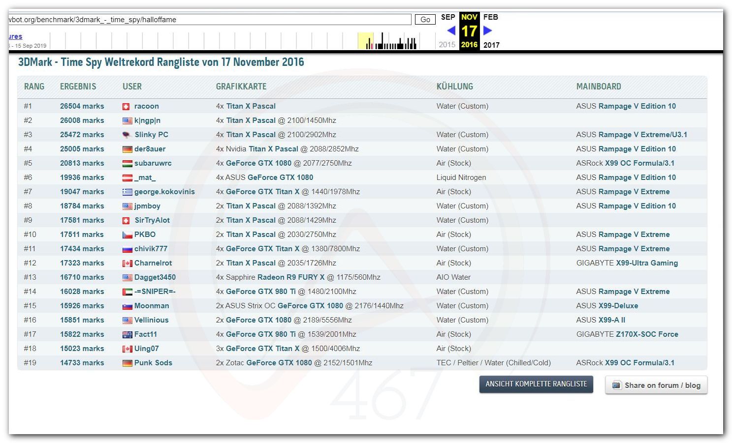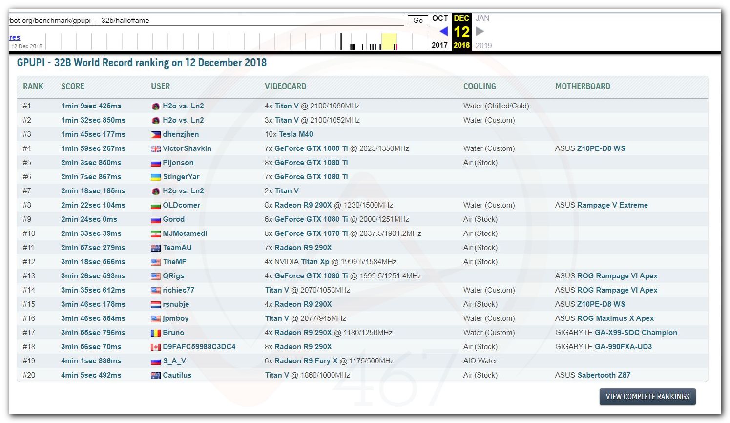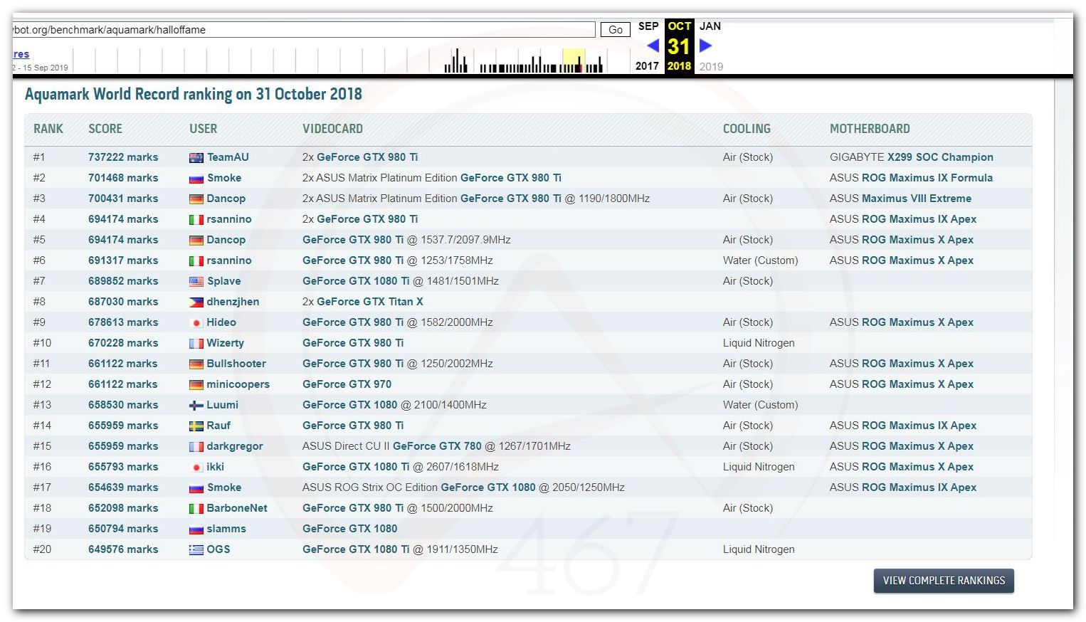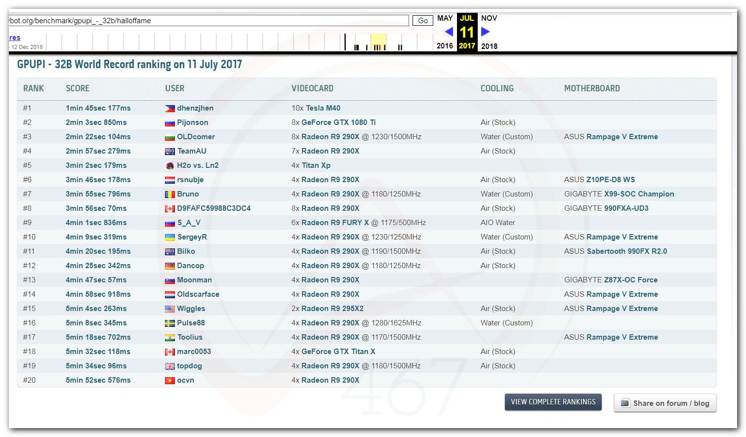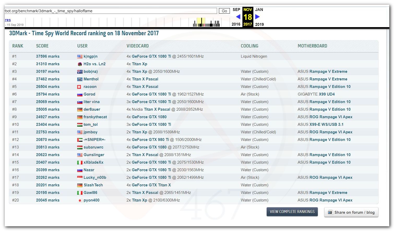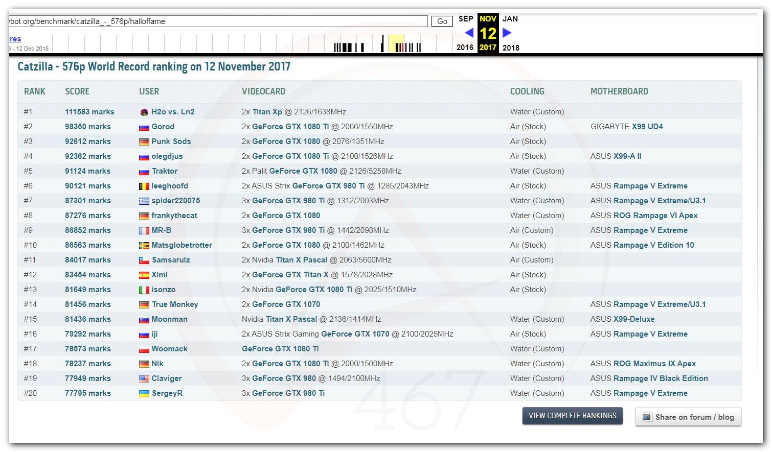В 2000г. наверное самый бум наступил в момент появления 3DMark2000 и далее 2001, и создания базы этих результатов ORB на сайте MadOnion. В последствии перекочевала на Futuremark.