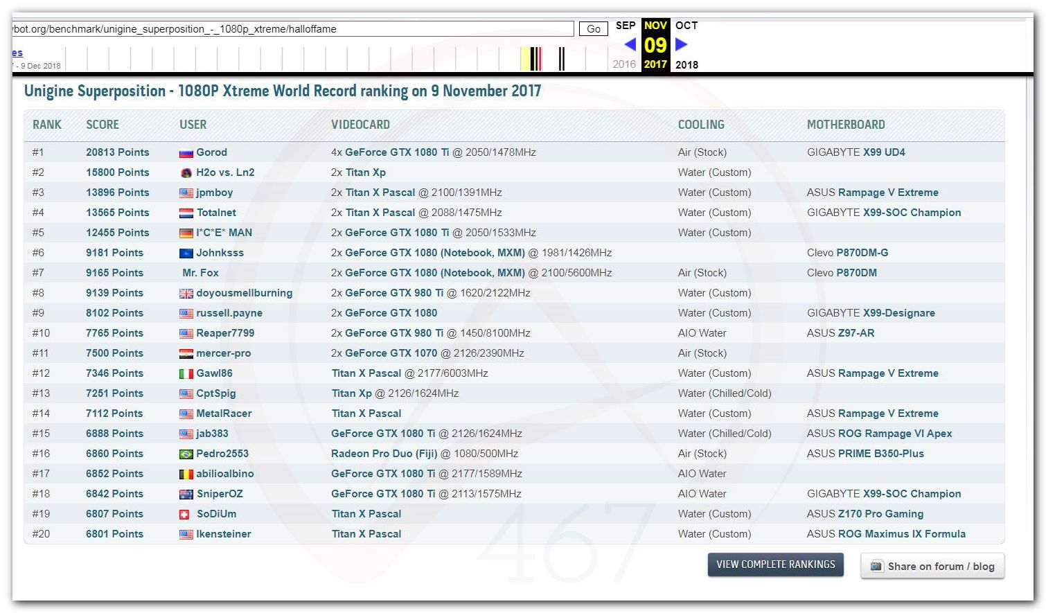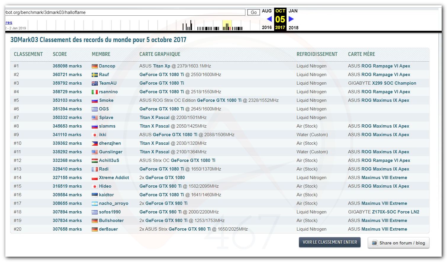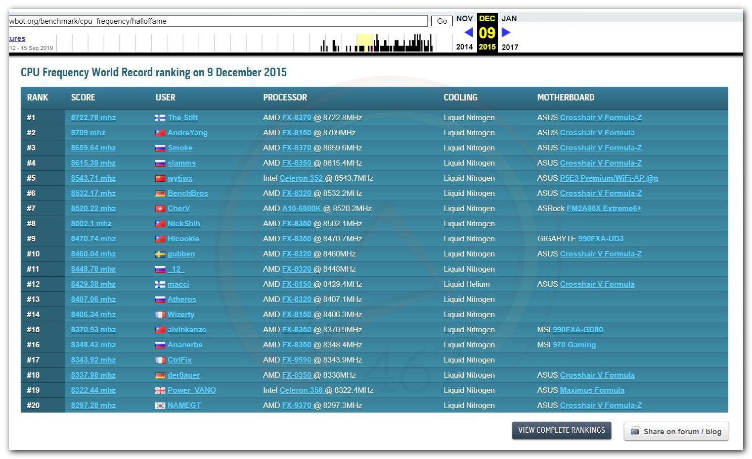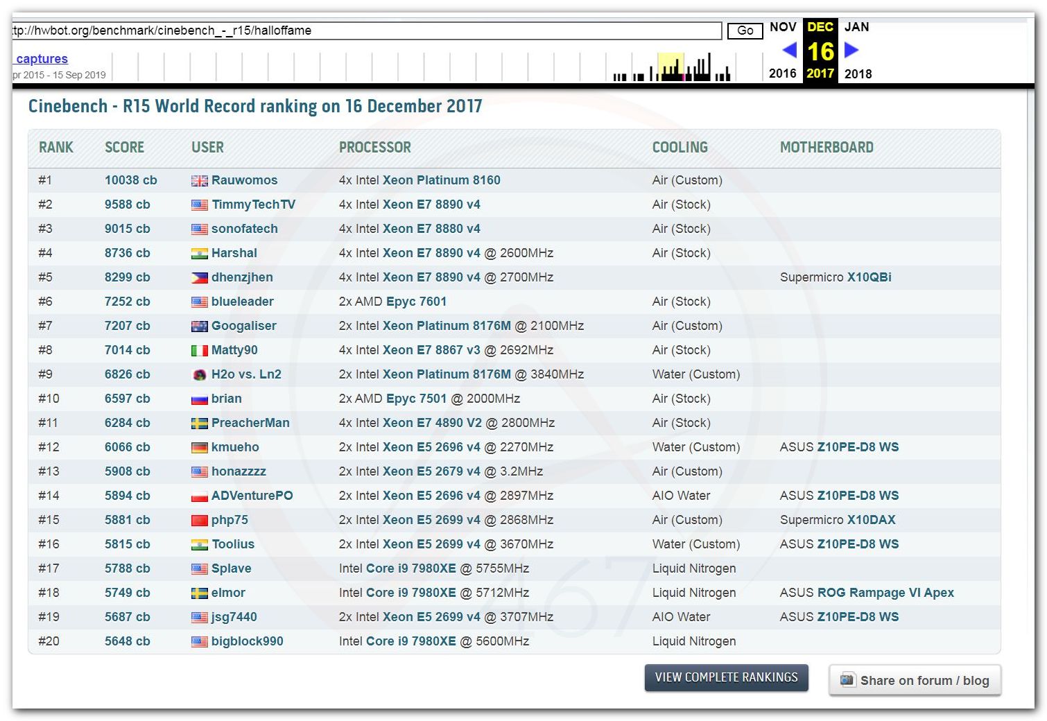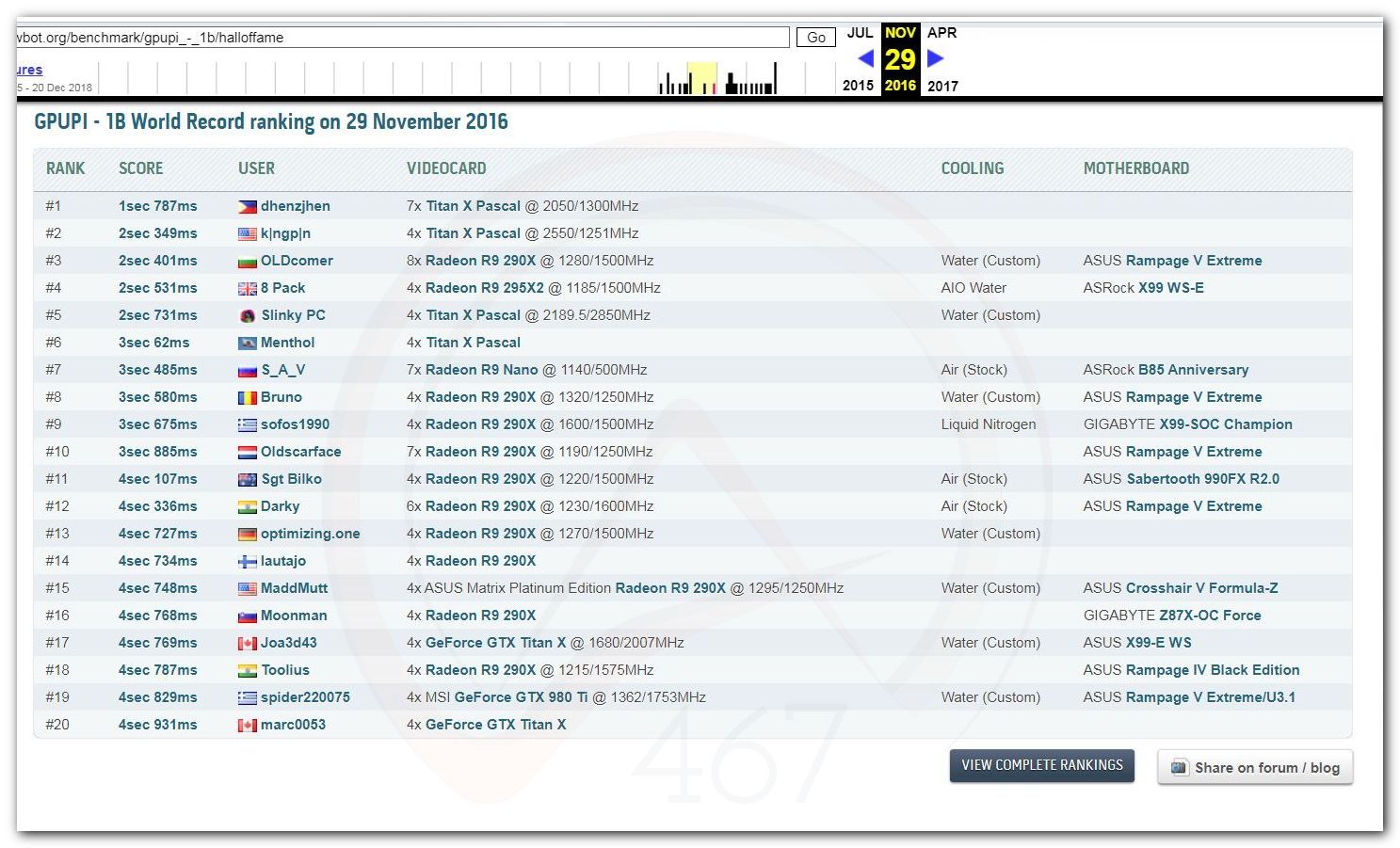 В 2000г. наверное самый бум наступил в момент появления 3DMark2000 и далее 2001, и создания базы этих результатов ORB на сайте MadOnion. В последствии перекочевала на Futuremark.