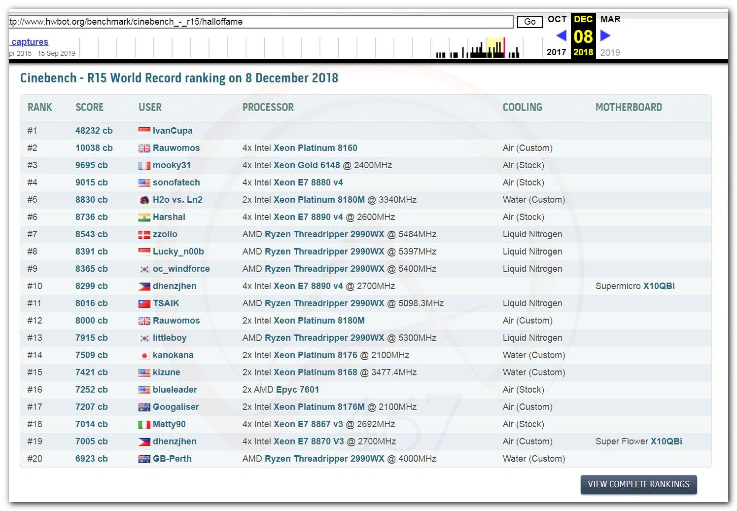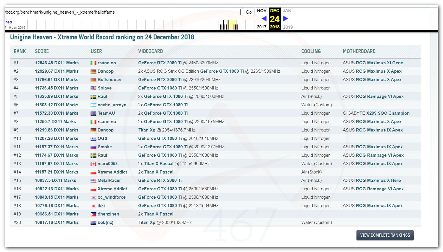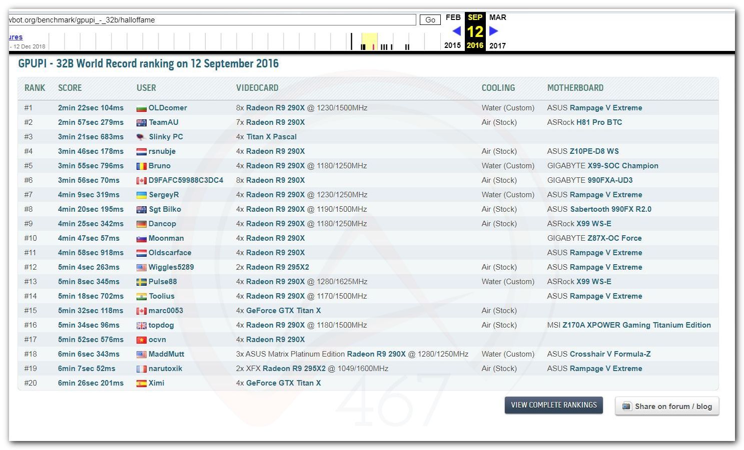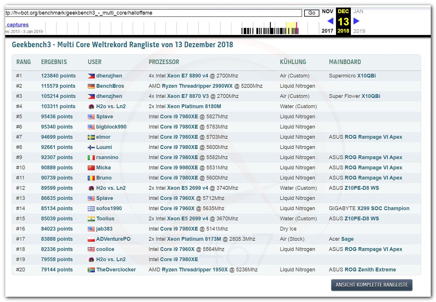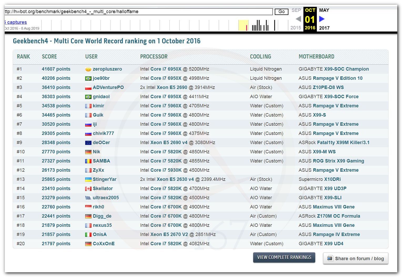 В 2000г. наверное самый бум наступил в момент появления 3DMark2000 и далее 2001, и создания базы этих результатов ORB на сайте MadOnion. В последствии перекочевала на Futuremark.