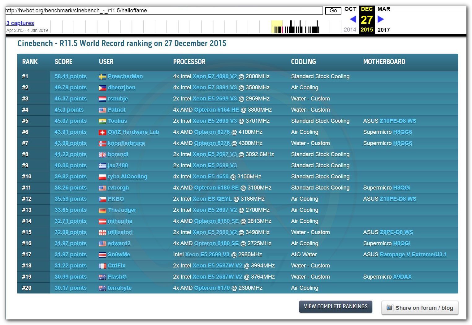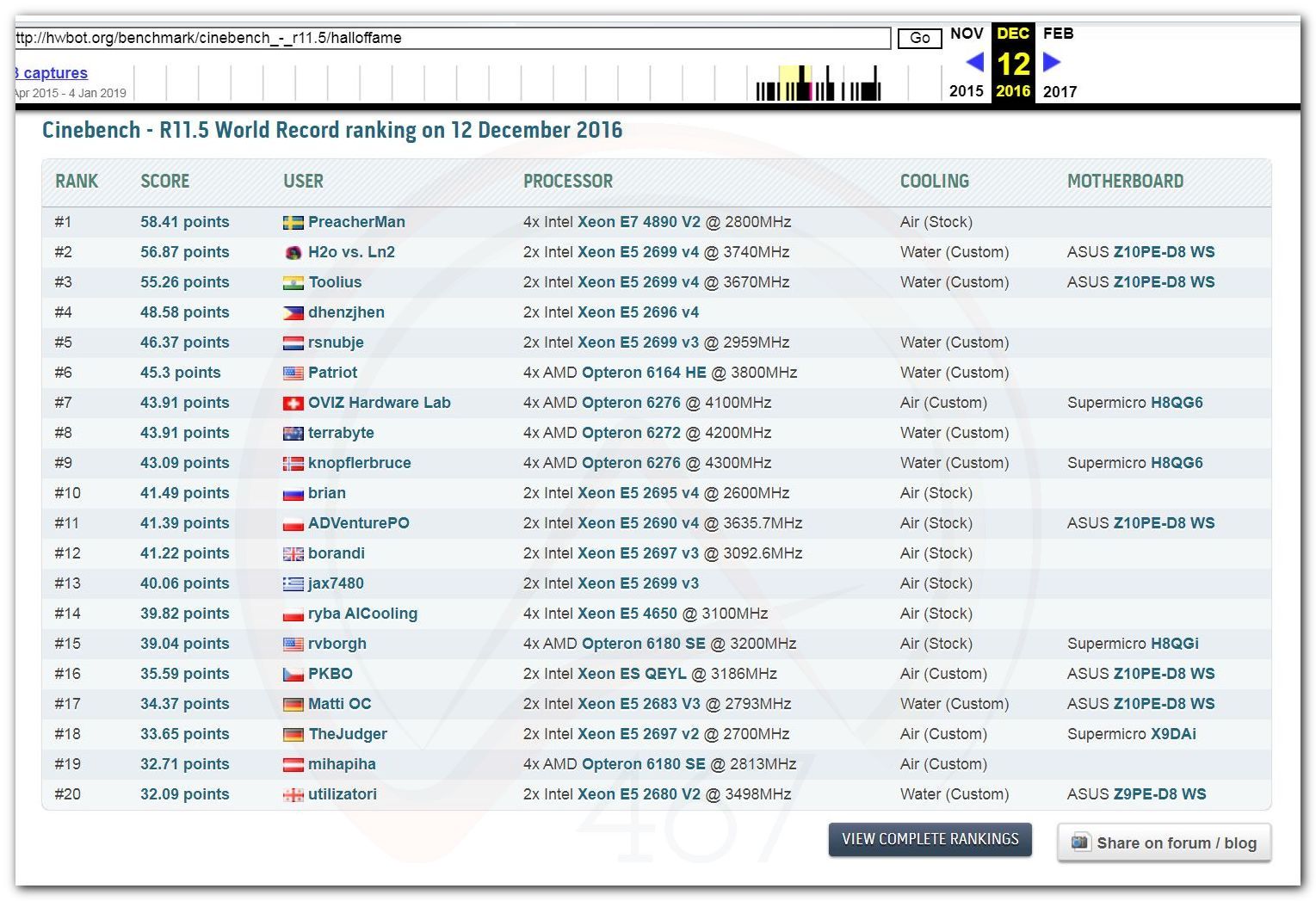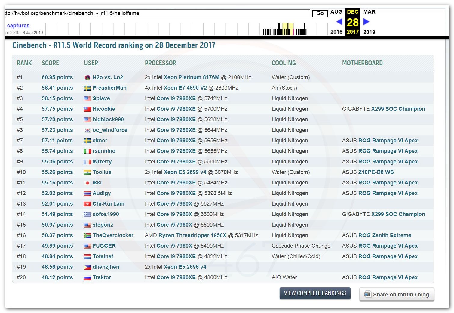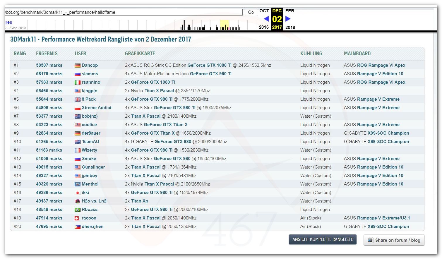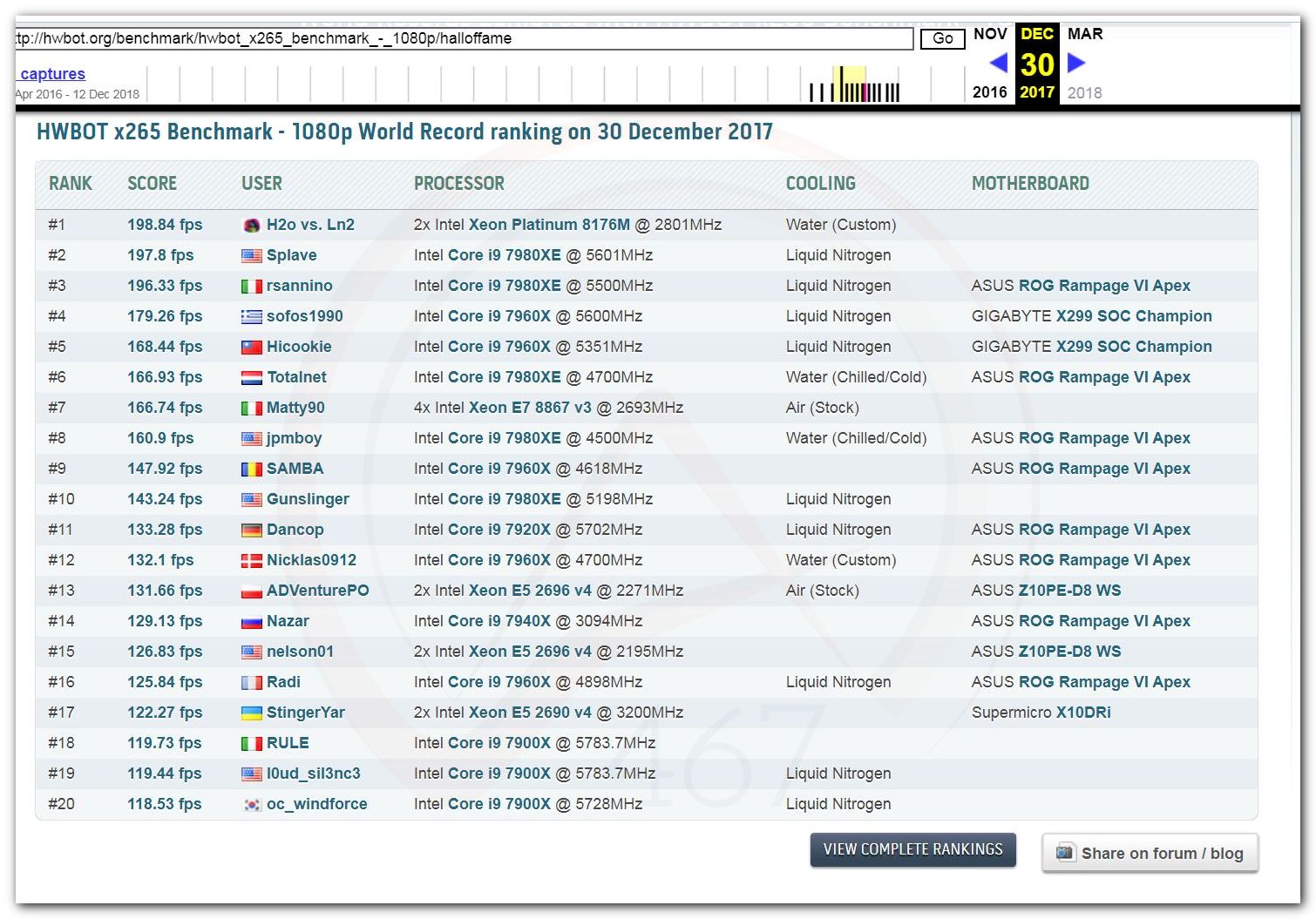 В 2000г. наверное самый бум наступил в момент появления 3DMark2000 и далее 2001, и создания базы этих результатов ORB на сайте MadOnion. В последствии перекочевала на Futuremark.