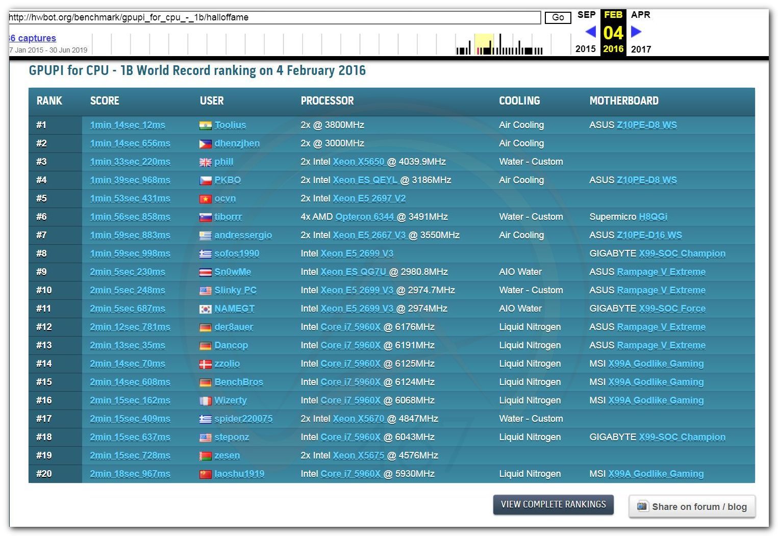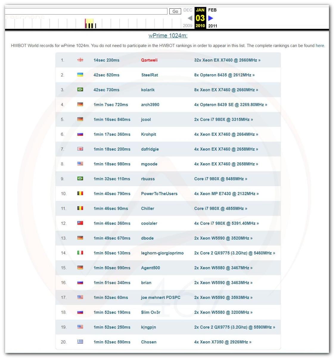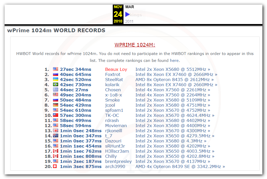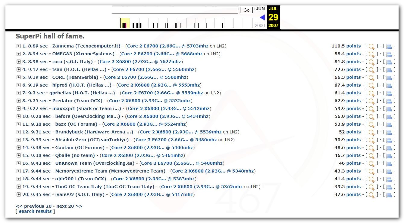 На странице bunnywk есть переход в базы SuperPi и Pifast