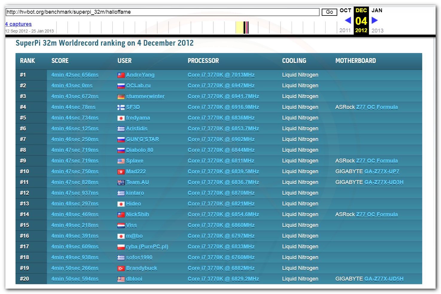 Как сказали, был ещё один Японец Ohashi "kyosen" Katsumi, он младше выше описанных, к сожалению информации оригинала я не нашёл, только несколько постов на xtremesystems.org если кто подскажет где искать то дополню. На то время у него были Мирового уровня рекорды.