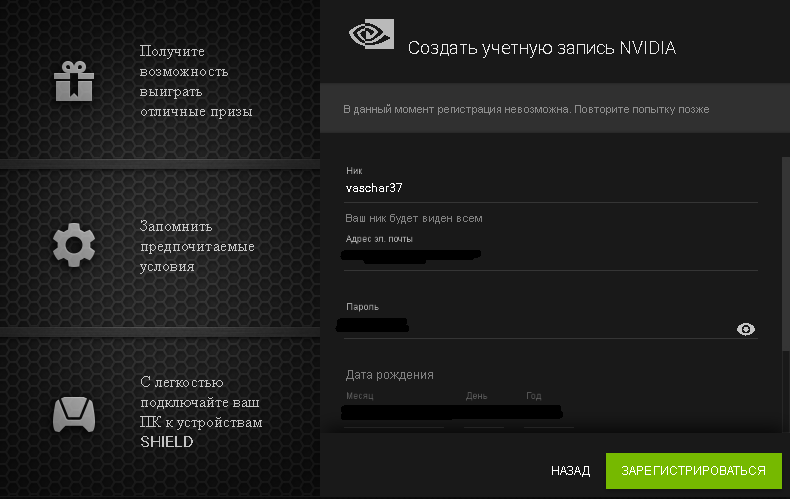 Так же и с регистрацией к nvidia: