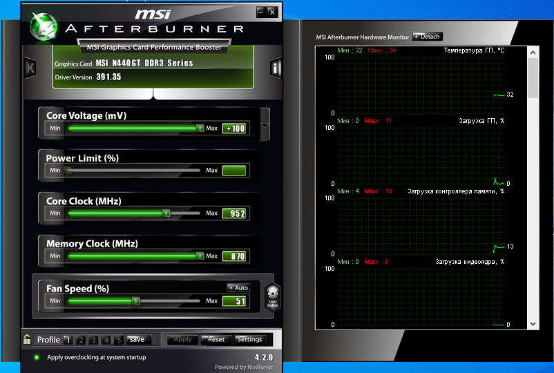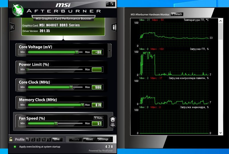 Устанавливается только с драйвером 391.35 карта имеет две фазы на ядро и один на память, что дает приличный такой разгонный потенциал карты:
