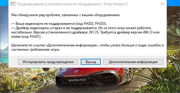 Forza horison 5 и Cyberpunk 2077 не запустились, выдав о не совместимости драйвера