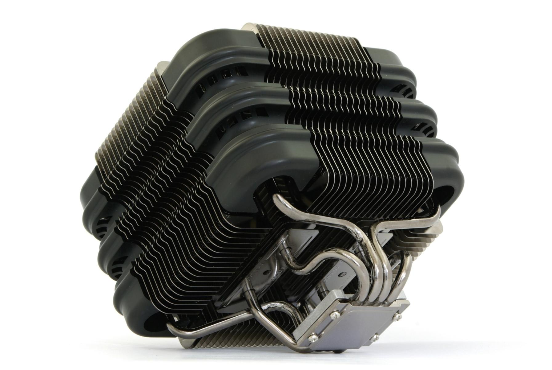 Skythe - Делал огромные радиаторы воздушного охлаждения, в расчет не берутся с уже установленными кулерами, хотя такие и были, как например Orochi, его размеры позволяют разместить 3 кулера по сторонам, для видеокарт серия ninja, радиатор без возможности крепления кулеров.