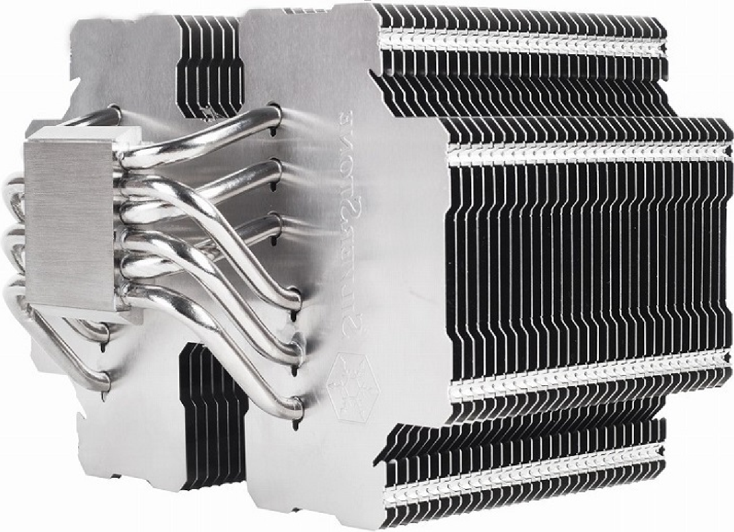Silverstone - fanless, пассивный радиатор, с возможностью установить активное охлаждение, вполне справлялся с горячими процессорами.
