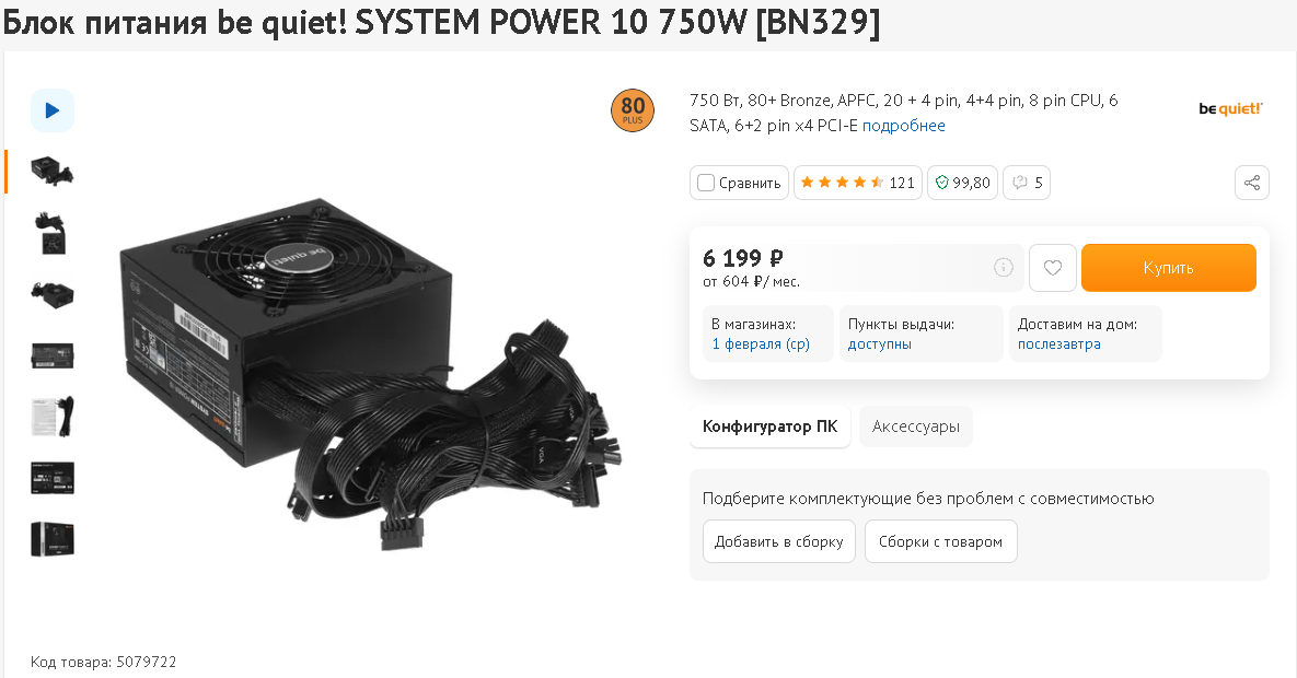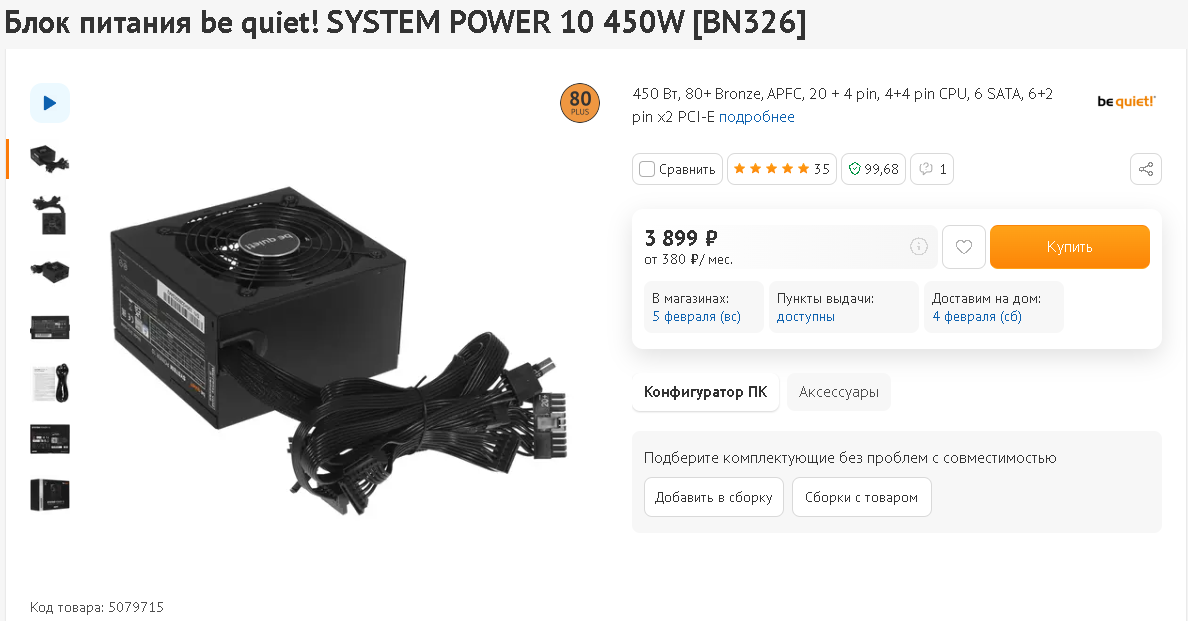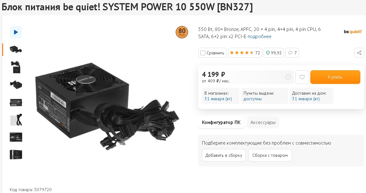 Топовый по своей цене / производительность от be quiet, все защиты OPP, OCP, OVP, OTP, UVP, SCP, для мощного игрового компьютера с топовой видеокартой, переживет не одну сборку.