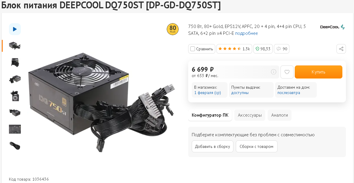 С защитами OPP, OVP, UVP, SCP, золотым сертификатом, обеспечивает достаточную производительность игрового компьютера за свою цену.