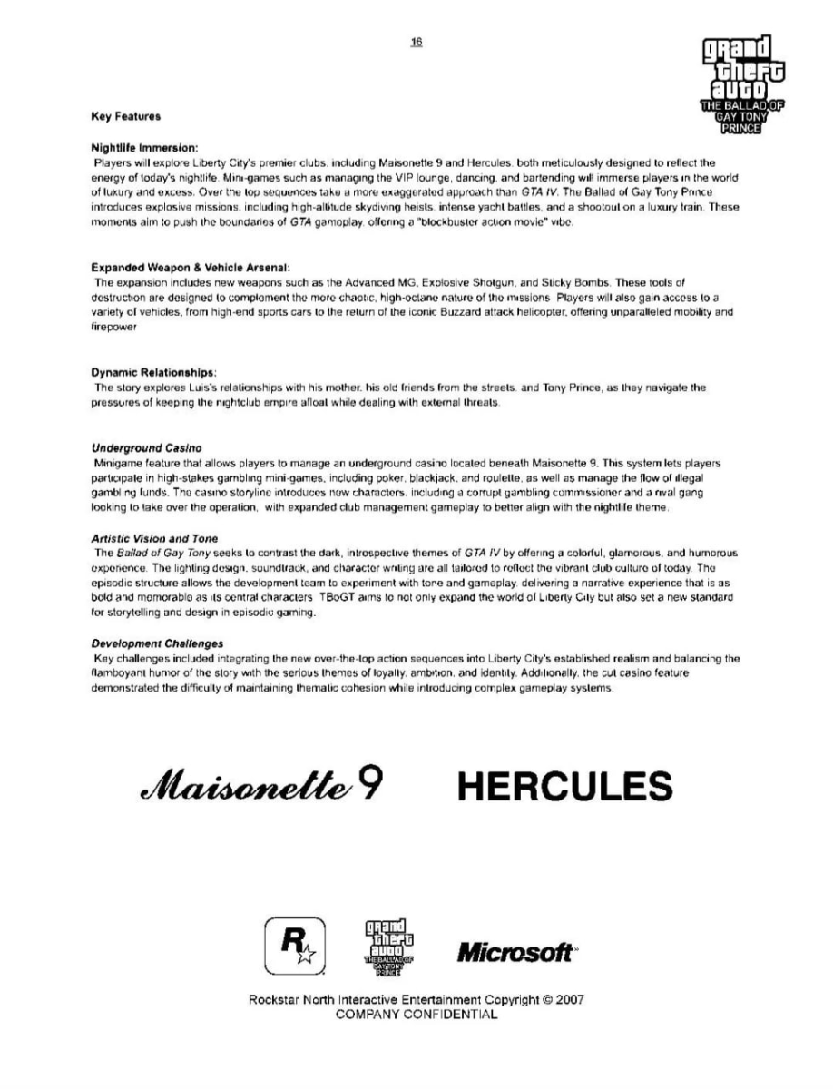 Фанаты серии Grand Theft Auto получили неожиданный сюрприз: на Reddit появился пост, связанный с утечкой уникального дизайн-документа, касающегося разработки дополнения GTA 4: The Ballad of Gay Tony. Пользователь, опубликовавший пост, сообщил, что сталкивается с проблемами при попытках загрузить полный архив материалов на популярные платформы. Файлы неоднократно удалялись, что, вероятно, связано с их конфиденциальным характером. Тем не менее, он пообещал продолжить публикацию новых материалов, утверждая, что у него есть более интересные и редкие данные.