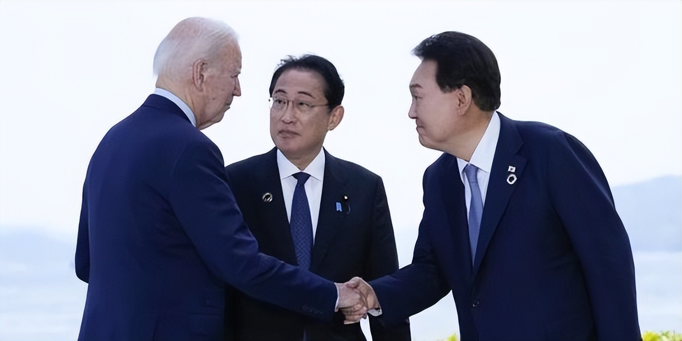 Президент США Джо Байден, премьер-министр Японии Фумио Кисида и президент Южной Кореи Юн Сук Ёль проводят беседу в рамках саммита "Большой семерки" в Хиросиме, Япония, в воскресенье 21 мая 2023 года. Фотография представлена онлайн-изданием iMedia - Connect the World.