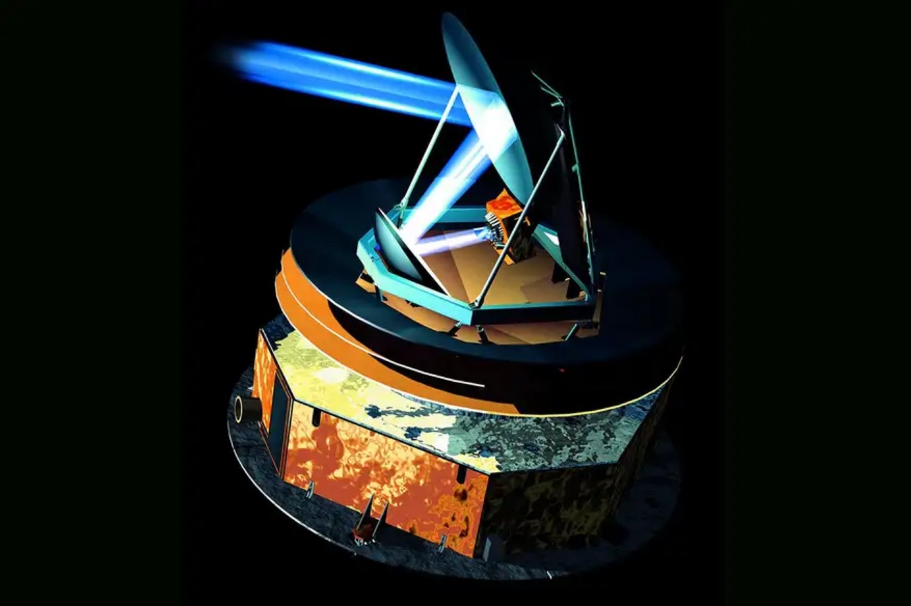 Чудо-частица: Аксионы способны решить не только проблему темной материи и темной энергии. Художественный образ движения света через спутник "Планк", на котором были замечены признаки эффекта, потенциально порождаемого аксионами. European Space Agency, ESA