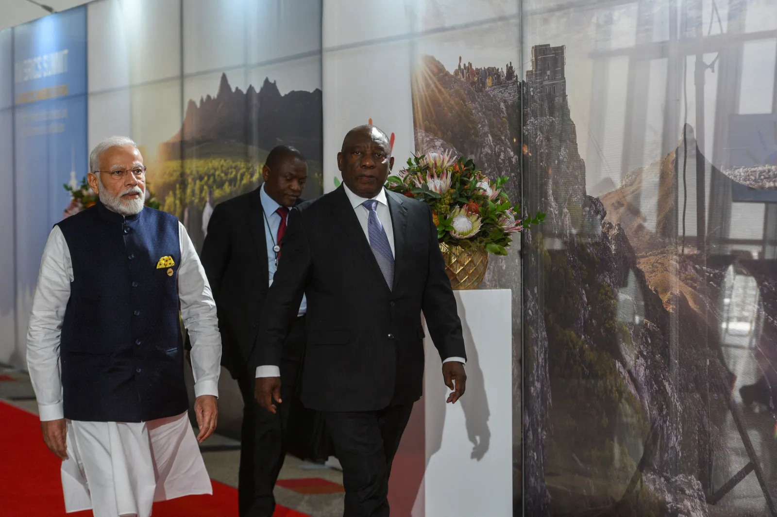 События на Украине заставили западных экспертов вспомнить о том, что существует мир за пределами "великих держав" и их основных союзников. Этот мир, состоящий преимущественно из стран Африки, Азии и Латинской Америки, не желает принимать однозначную позицию в этом вопросе. На снимке премьер-министр Индии Нарендра Моди и президент Южной Африканской Республики Сирил Рамафоса в Йоханнесбурге, август 2023 года. Алет Преториус / агентство Reuters.
