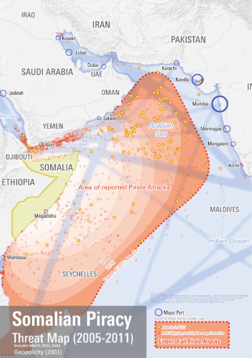 Масштаб проблемы сомалийского пиратства в пиковый период. Карты: Wikimedia Commons / Policity