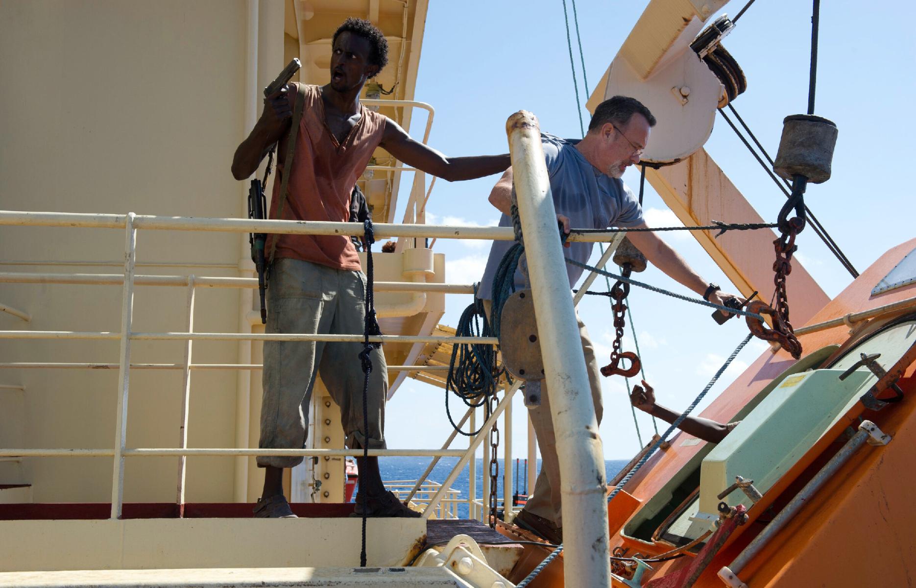 Прекращение военных действий в секторе Газа, привлекшее солидарных с палестинцами хутистов, которые, в свою очередь, "вдохновили" сомалийских пиратов, также важно для укрепления региональной безопасности в целом, считает нигирийский эксперт Самуэль Ойеволе. Кадр из кинофильма "Капитан Филлипс" (Captain Phillips), режиссер Пол Гринграсс, в главной роли Том Хэнкс.
