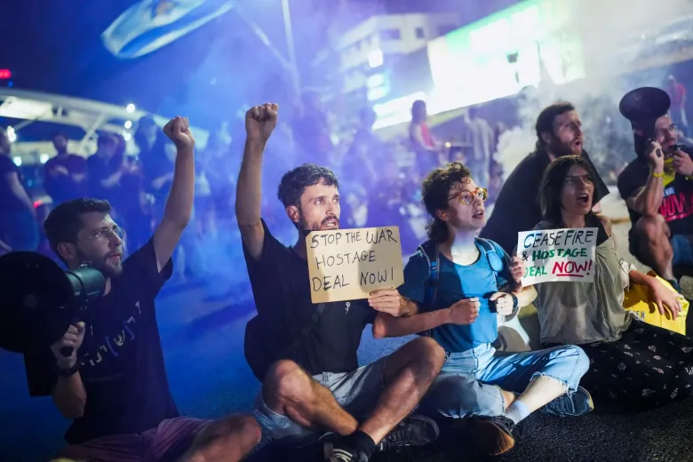 Демонстранты блокируют шоссе Аялон в Тель-Авиве, Израиль, после того как израильская армия объявила о гибели четырех израильских заложников 3 июня 2024 года. Photo: Erik Marmor / Flash90 via The Conversation