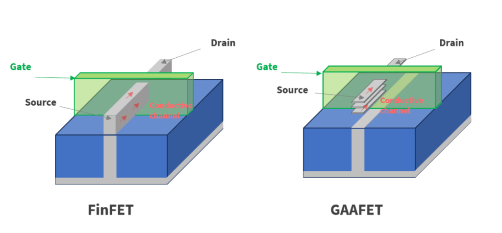 Именно поэтому была разработана технология GAAFETAAFET (Gate-All-Around Field-Effect Transistor). Ожидается, что новая архитектура обеспечит дальнейший рост производительности микросхем и позволит перейти на более тонкие технологические процессы вплоть до 1-2 нанометра.