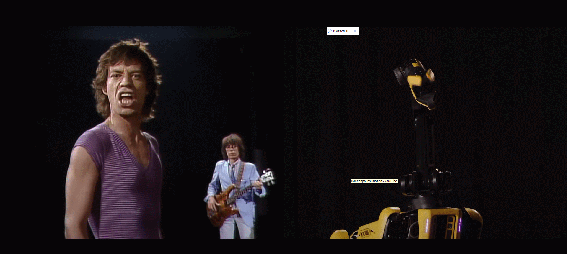 В видеоролике Boston Dynamics робот Spot начинает танцевать почти синхронно подражая движениям Микка Джаггера из параллельного ролика. Раньше трудно было даже представить, что четвероногий робот сможет с такой точностью имитировать покачивание головой в такт движениям головы исполнителя.