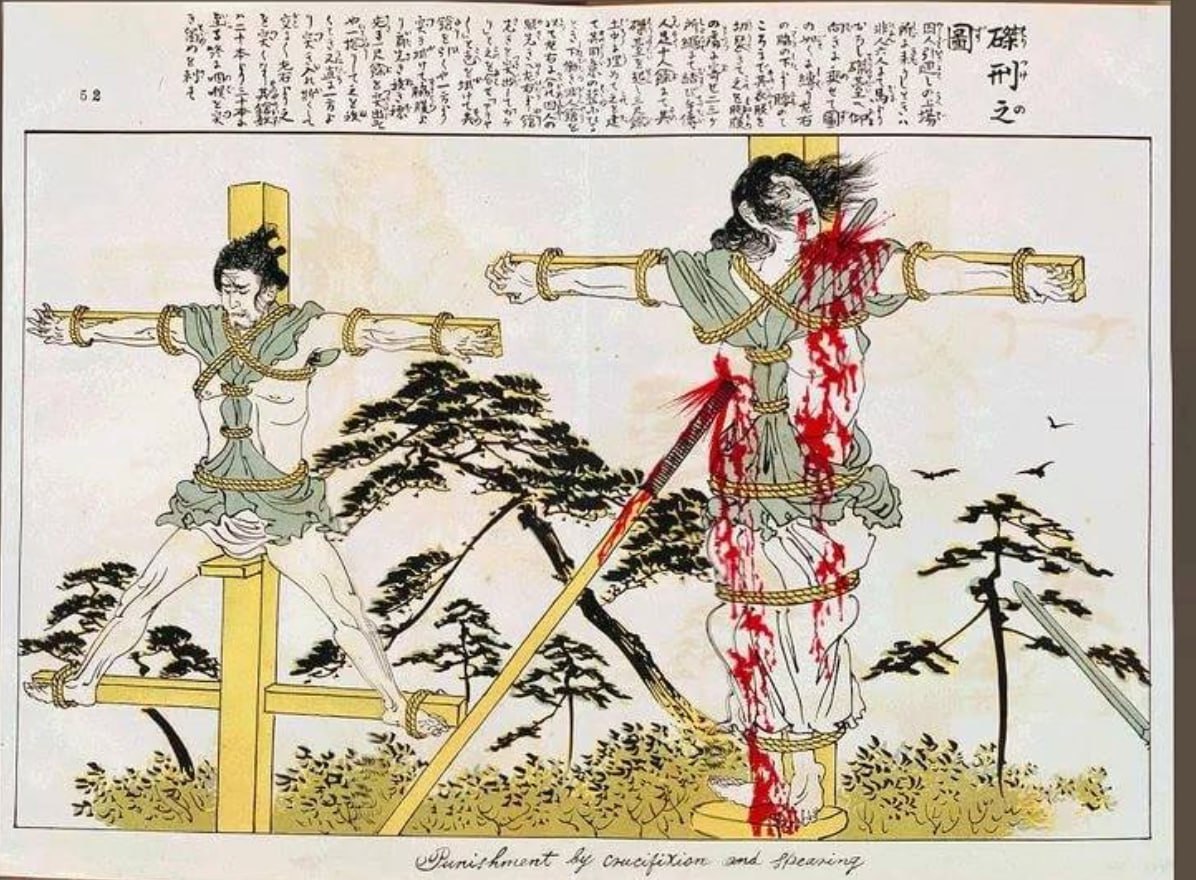 В древнем Китае одной из страшных казней была пытка под названием "смерть от тысячи порезов". Подобная экзекуция за "преступный подрыв великих устоев" была рассчитана на год: палачи постепенно наносили мучительные раны или отрезали маленькие кусочки тела, затем под наблюдением врача эти раны прижигались и даже заживали, чтобы на следующий день можно было отрезать или отрубить еще один фрагмент тела. The PoliticalJustice Information and Analysis Channel.