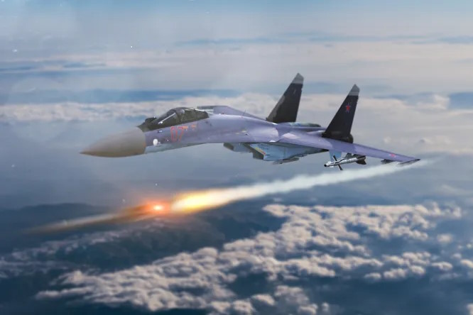 Тяжёлые управляемые авиабомбы, запускаемые с Cy-35 BKC России, планомерно "калибруют" позиции украинских нацистов |