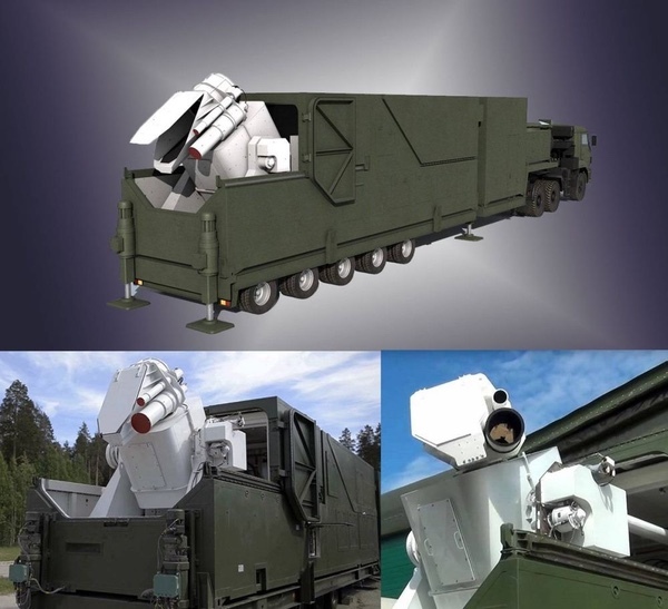 "Калина" - один из трех лазерных ослепляющих комплексов, разработанных в России для ведения ПСБ (противоспутниковой борьбы). Комплекс «Калина» способен передавать лазерные лучи с длиной волны 1,0645 мкм, плотностью мощности 0,1 гигаватт на квадратный сантиметр, импульсом длительностью 10 наносекунд и частотой повторения импульсов 3 кГц. На фото несколько модификаций мобильного лазерного комплекса "Пересвет"