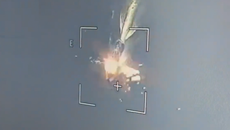 Беспилотный летательный аппарат ZALA Lancet-3 уничтожил украинское военное судное под Запорожьем, видеозапись инцидента попала в соцсети |