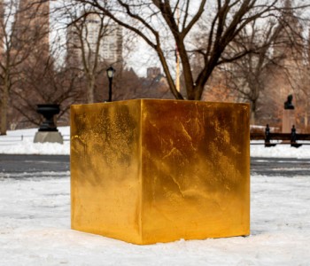 Художник выставил в парке Нью-Йорка куб из чистого золота за $11,7 млн и приставил к нему охрану