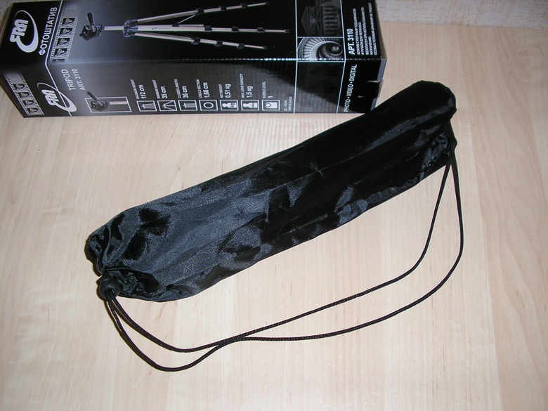 Внутри коробки, штатив уложен в текстильную сумочку - предназначенную для удобной транспортировки.
