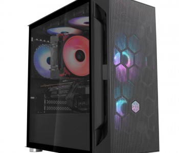 Боковая панель из слегка тонированного закаленного стекла со стальной сотовой передней панелью для увеличения входящего воздушного потока. Не нужно жертвовать производительностью ради эстетики