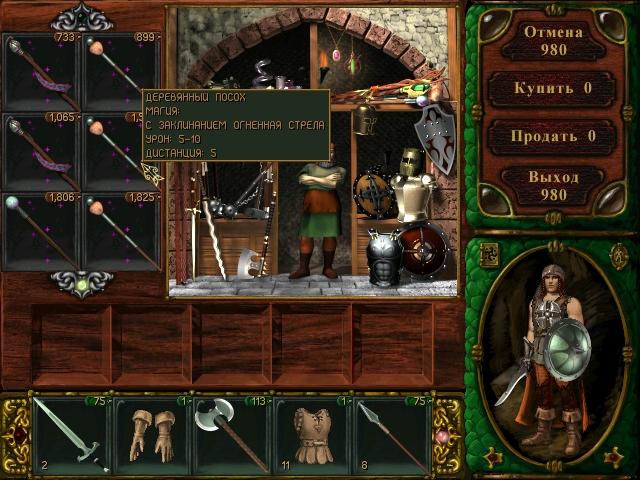 А в чем-то они были и лучше мэтров жанра, например, детально и тщательно прорисованные оружие и доспехи при торговле. При этом они были крупные! В те годы многие студии стали "мельчить" в интерфейсах игр и мелкие иконки оружия в разрешении 800х600 или 640х480 на 14 дюймовом мониторе - это была боль.