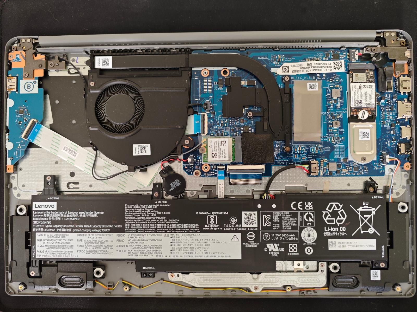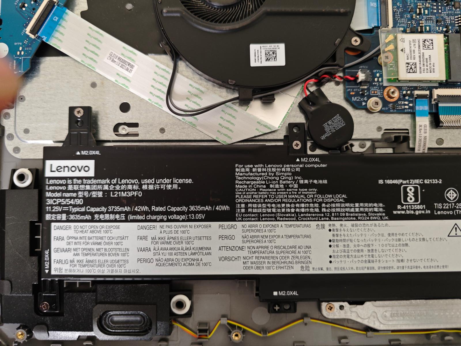 В ноутбуке установлен стандартный аккумулятор Lenovo модели L21M3PF0, используемый во многих других моделях производителя, что, во-первых, снимает проблему с поиском его замены в случае выхода из строя, а, во-вторых, даёт надежду на хорошую автономность, ведь он же используется и в гораздо более мощных моделях.