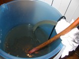Вылил всю, больше не было. Добавил соли - чтоб алюминий тоже травило. Гонял часов 10. Судя по небольшим частичками грязи в ведре, раствор на сабж почти не действует. По опыту - ещё как действует, только не растворяет. Потом тряпочкой стирать надо. Растворяет только конц. кислота при кипячении.