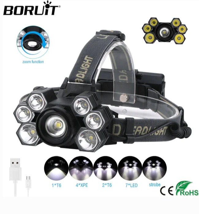 Имеет 5 режимов освещения: Супер яркий-высокий свет-средний свет-низкий свет-стробоскоп, больше режима доступны. Светодиод T6. На сайте предельная яркость свечения указанная в 5 000. Питание происходит от 2х акб 18650, которые можно купить отдельно, либо выбрать более богатую комплектацию. Подходит для кемпинга, туризма, велоспорта, рыбалки и других видов активного отдыха.