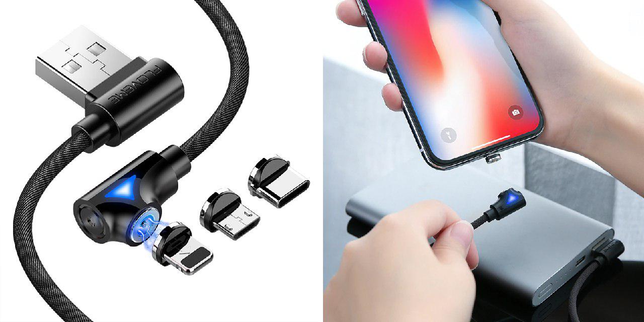 Качественный магнитный кабель для зарядки устройств с разъёмами microUSB, Lightning или USB-C.