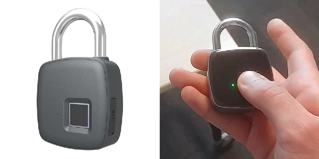 Навесной замок в защищённом от воды и пыли корпусе со сканером отпечатков пальцев. Может сохранять до десяти отпечатков. Заряжается через USB.