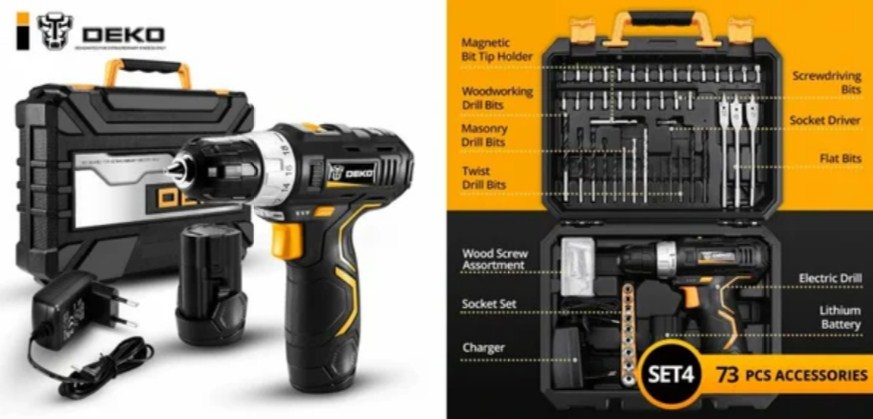 Этот набор однозначно пригодится на хозяйстве, ведь он включает в себя все необходимые инструменты и насадки для их использования.