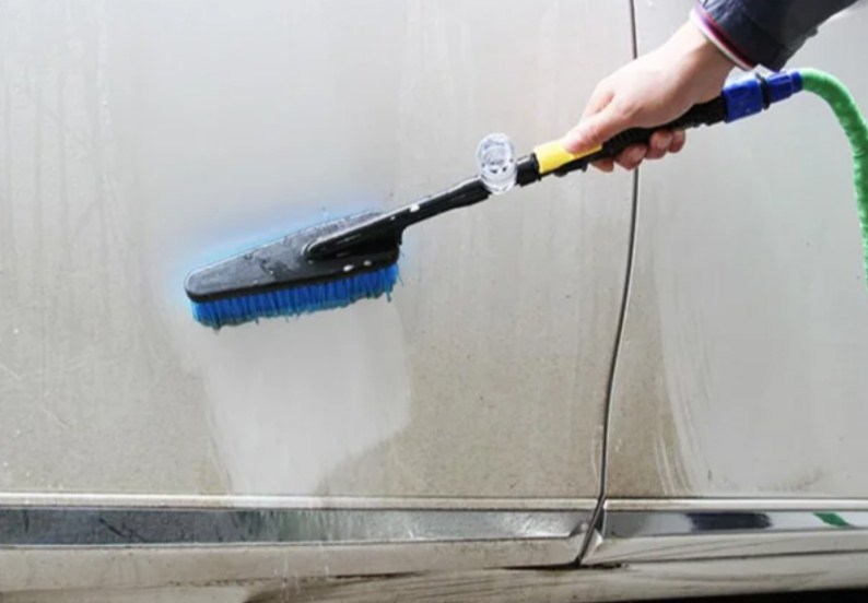 Полезным приспособлением для тех, кто моет свой автомобиль самостоятельно, станет многофункциональная щётка, представляющая собой ПВХ трубку. С одной стороны она подключается к шлангу подачи воды, а с другой на ней расположен непосредственно сам чистящий элемент с полипропиленовым ворсом. Также в трубку встроен небольшой отсек для моющего средства — под напором воды оно дозируется в небольших порциях и подаётся на щётку. Таким образом, чтобы качественно помыть машину, вам нужно будет всего лишь наполнить флакончик и через фитинг подключить шланг из-под крана. Больше всего мне нравится то, что не придётся мочить и вымазывать руки, как, например, с обычной тряпкой. На рукояти, кстати, есть рычаг управления подачей воды, так что её расход сокращается к минимуму. Щётка отмывает любую грязь за исключением битума и других инородных пятен. Несмотря на жёсткую щетину, она не оставляет следов даже на полированной поверхности. В общем, вещь отличная — себе заказал и вам советую!