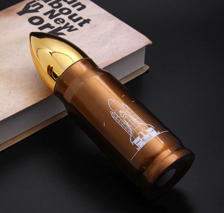 Если вы хотите сделать подарок своего другу, то этот вариант для вас. Это прикольный металлический термос в виде патрона. Корпус изготовлен из нержавеющей стали. Из отзывов можно увидеть, что тепло он держит долго. Термоизоляция до 12 часов.