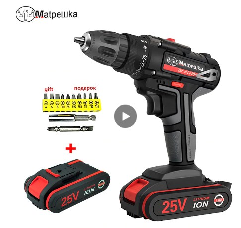 А это отличный электрический шуруповерт с возможностью беспроводного управления. В комплекте с самим девайсом Вы получаете 1 или 2 аккумулятора, зарядное устройство, а также многофункциональную биту и 11 головок.