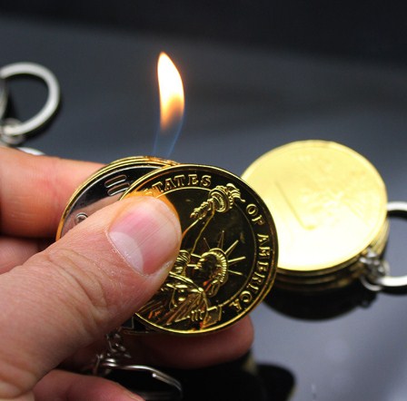 Для того, чтобы ее зажечь, достаточно просто передвинуть монетку. Выглядит очень оригинально, но из-за маленького размера такую зажигалку придется постоянно заправлять. В качестве топлива используется бутан, который можно купить в магазинах по продаже зажигалок и подобных товаров.