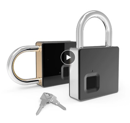 Замок бесключевой с водонепроницаемым сенсором от попадания воды, можно повесить на ящик, чемодан, велосипед, дверь. Изготовлен из цинкового сплава, имеет прочный механизм. Можно изменить доступ при помощи отпечатка пальца. Размер изделия 88 на 53 мм, вес 250 грамм. Устройство также имеет дополнительно комплект металлических ключей.