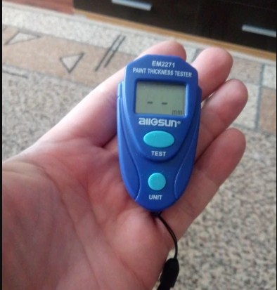 Измеряет уровень краски на металле у авто. Точность устройства 0,01 мм. Диапазон измерений от 1 до 10 мм. Прибор компактный, размером 5 на 3 см, есть жк экран с подсветкой, имеет контактный щуп и кнопки для управления. Питание от батарейки таблеточного типа на 1,5 вольта.