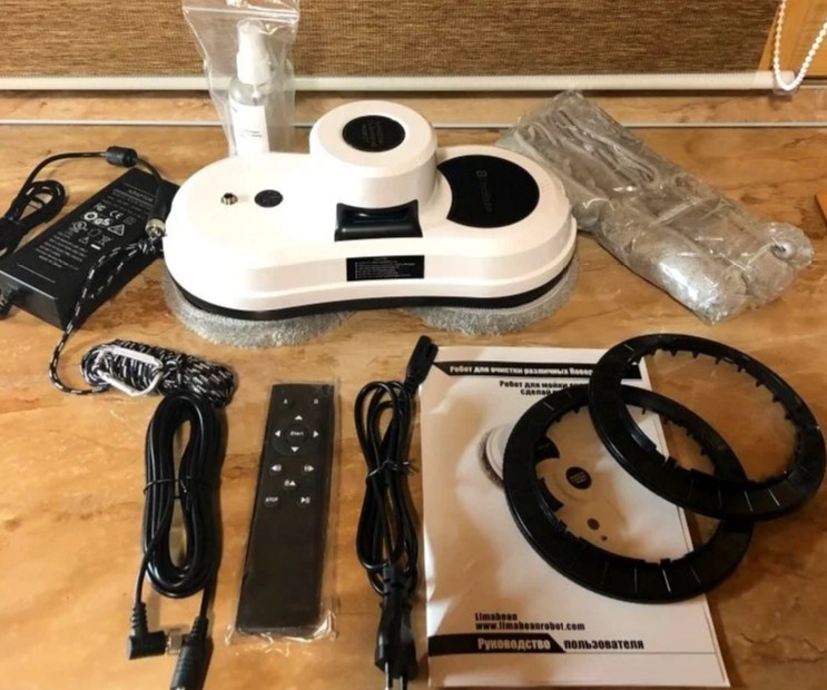 Данный робот отлично справляется с мытьем стекол и зеркал. Его мощность 80 ватт. Размер изделия 240*80см. Имеется 5 режимов работы щеток. Управление происходит от пульта ДУ.